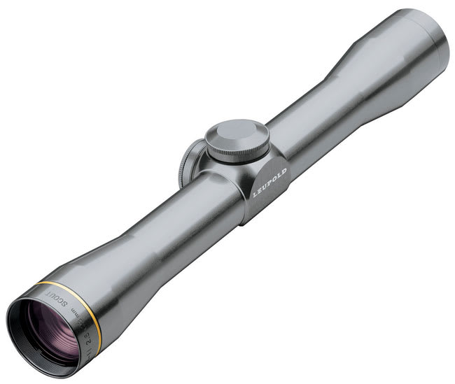This Leupold FX-II Scout 2.5x28mm scope with Duplex reticle features a gun metal gray finish, multicoat 4, xtended twilight lens system, diamondcoat2, 2nd generation argon/krypton waterproofing, blackened lens edges, super fast-focus eyepiece, lockable fast-focus eyepiece, classic/standard lockable eyepiece, ballistic aiming system, standard multicoat, adjustable objective, proprietary nitrogen fill process, and 6061-T6 aircraft quality aluminum.