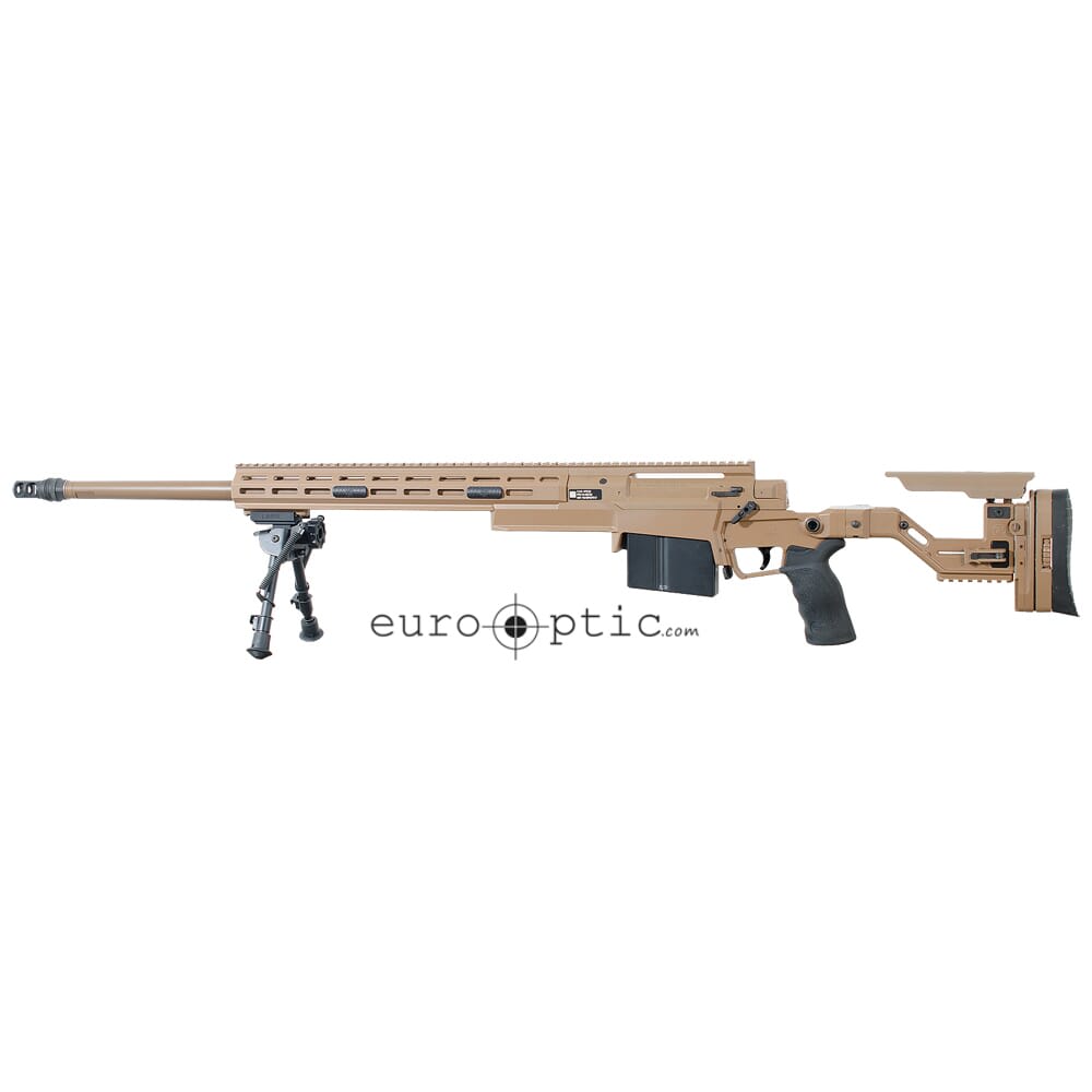 The AXMC is a multi-caliber bolt action rifle designed by Accuracy International and is considered one of the finest precision rifles available to both military and civilians. The action is AIs own 6 lug, 60 bolt with combat proven leaf spring extractor. The AXMCs unique Quickloc caliber conversion system allows the user to change the caliber of the rifle within minutes using just one torque wrench tool. The AXMC also comes outfitted with a 16 octagonal forend that features a 30 MOA full length top Picatinny rail, KeyMod attachment points on all faces (except the 12 oclock), and flush cup accessory rails. The buttstock is right side foldable with adjustable checkpiece and length of pull. The buttstock is also configured to accept monopods or butt spikes for prone shooting and features flush cup attachment points for slings.