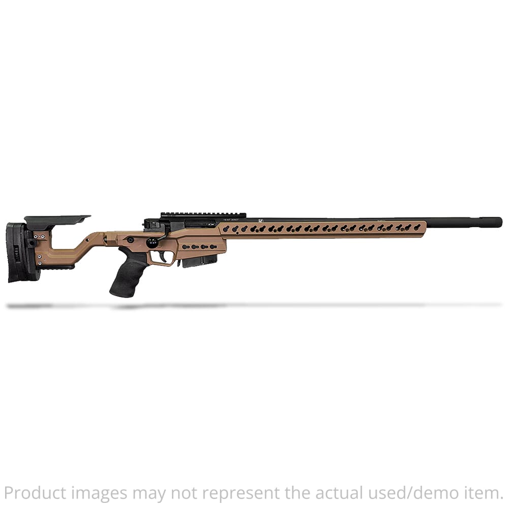 Accuracy International produces some of the finest rifles in the world, and the AT-X is no exception. This precision rifle was designed with input and recommendations from AI team shooters, and addresses the shortcomings AI sniper rifles face in the competition fields. It features a lower barrel axis for faster stabilization and a straighter recoil impulse to get back on target faster after shooting. The non-bonded, barreled action sits lower on the chassis enabling the scope to be mounted lower to help clear barricades and portholes during competition shooting. Its match grade trigger comes with a heavy spring kit pre-installed, and provides a crisp pull of 1.5 lbs to 2.75 lbs, but can be configured to 12 ounces to 1.5 lbs by installing the light spring kit. In addition, the magazine well has been overcut to speed up magazine changes, but the rifle can also be reloaded directly through the ejection port.