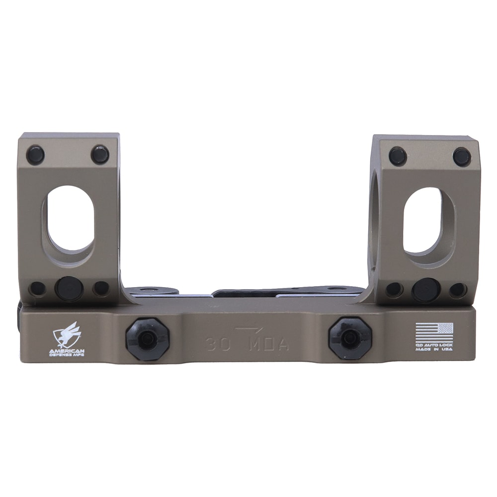 The American Defense AD-RECON-SL 30 MOA Scope Mount is designed for mounting high-power optics on bolt-action rifles, M1A, M-14, or 10/22's. Featuring a 30 MOA cant for extended elevation adjustments, this low-profile mount is precision machined from 6061 T6 aluminum and finished in hard coat T3 Mil-Spec anodize. The patented QD Auto Lock™ Lever system ensures secure attachment and detachment without proprietary tools, accommodating both in-spec and out-of-spec rail systems. The 1" rings provide a stable and durable mounting solution.