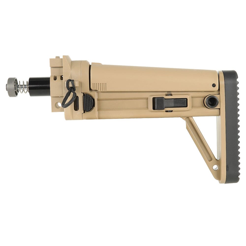 The B&T APC 9/40/45 MBT Folding Stock with an 8-position adjustable cheek piece and a 3-position adjustable cheek piece, B&T BT-361639-CT featuring a hydraulic buffer, offers versatile customization for shooters seeking comfort and stability in their firearms setup.