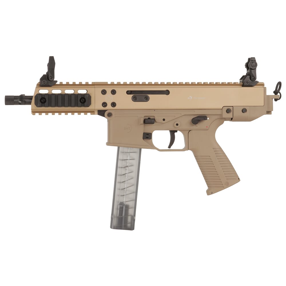 Introducing the B&T GHM9 9mm Coyote Tan Pistol BT-450002-2-CT. With Swiss precision and style, this B&T 450002-2-CT features ambidextrous controls and a 6.9" threaded barrel for suppressor compatibility. Its Picatinny rails allow for easy accessory mounting, while the rear surface enables attachment of pistol braces or stocks with NFA approval. Versatile and reliable, the GHM9 delivers unmatched performance in a compact package.