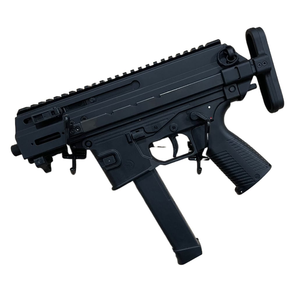 The B&T APC9K PRO is a compact, duty-grade submachine gun–style carbine engineered for professional users who require maximum performance in a highly maneuverable platform. Chambered in 9 × 19 mm, it features a 4.3" (110 mm) barrel with a threaded muzzle for suppressor or muzzle device compatibility, making it well suited for CQB and discreet operations. The PRO variant incorporates fully ambidextrous controls and a Glock-pattern lower receiver, allowing the use of widely available Glock magazines. Equipped with a telescoping stock in this registered SBR configuration, the APC9K PRO offers excellent balance and control in confined spaces. Built to B&T’s exacting Swiss standards, this Advanced Police Carbine delivers exceptional reliability, smooth recoil impulse, and precision for law enforcement, professional, and high-end civilian applications.