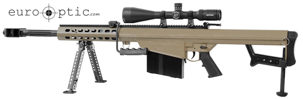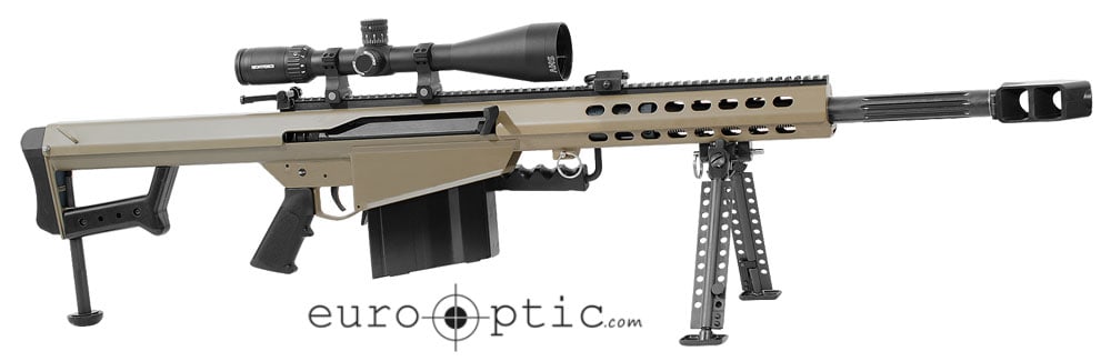 The Barrett M82A1s semi-automatic action relies on a rotating recoil operated bolt and is available with a 20 CQB barrel or 29 long range barrel. M82A1 rifles chambered in .416 Barrett exclusively use a 29 barrel. The receiver is made from steel to ensure unparalleled durability and also to add significant weight to mitigate the powerful recoil of the .50 BMG cartridge. Barrett M82A1 rifles ship with a lightweight quick-detach bipod that allows you to fire the rifle from a supported or prone position. .50 BMG Barrett M82A1s use an arrowhead shaped 2-port muzzle break for recoil mitigation and the .416 barrel M82A1s use a cylindrical 3-port muzzle break. M82A1 comes standard with a 23 Picatinny with a 27 MOA cant.