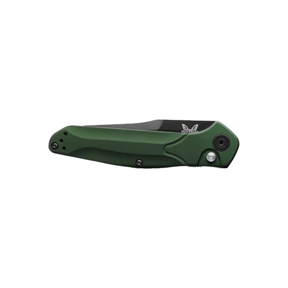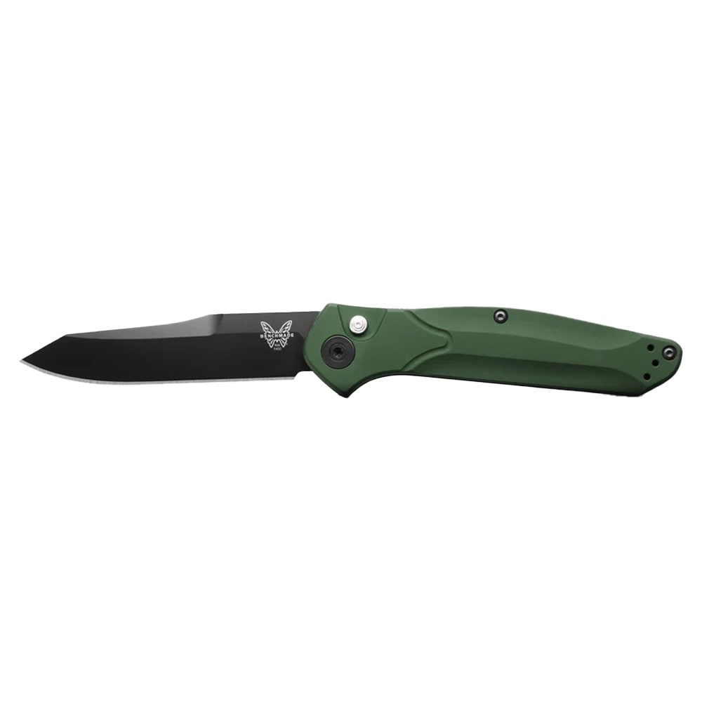 The Benchmade Auto Osborne Reverse Tanto 9400BK is a modern evolution of a legendary design, engineered for those who demand reliability, speed, and style in their everyday carry. This automatic knife is a testament to Benchmade's commitment to precision and innovation, offering a rapid, one-handed deployment for those critical moments when every second counts. The reverse tanto blade is expertly crafted to deliver superior piercing and slicing capabilities, making it a versatile tool for a wide range of tasks. The knife's robust green aluminum handle is not only lightweight and durable, but it's also ergonomically contoured to provide a secure, comfortable grip, even in challenging conditions. The sleek black blade finish adds a touch of tactical sophistication, ensuring this knife stands out in both performance and appearance. Compact and lightweight, the 9400BK is the perfect companion for everyday carry, blending iconic design with modern automatic functionality for those who refuse to compromise.