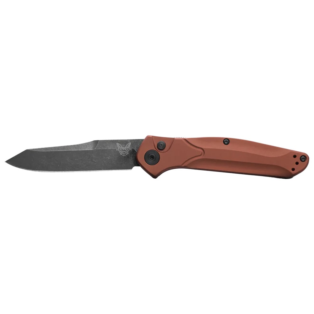 The Benchmade Auto Osborne 9400BK-03 is a masterful blend of innovation and style, designed for those who demand both performance and sophistication in their everyday carry. This automatic knife is engineered for rapid, one-handed deployment, making it a reliable companion for quick, decisive action. The reverse tanto blade is crafted for superior piercing and slicing, offering a unique edge geometry that excels in a variety of cutting tasks. The burnt copper aluminum handle is not only eye-catching, but also provides a robust, lightweight grip that stands up to daily use. Whether you're in the field, at work, or simply need a dependable tool at your side, the 9400BK-03 delivers the perfect balance of form and function, ensuring you're always prepared for the unexpected.