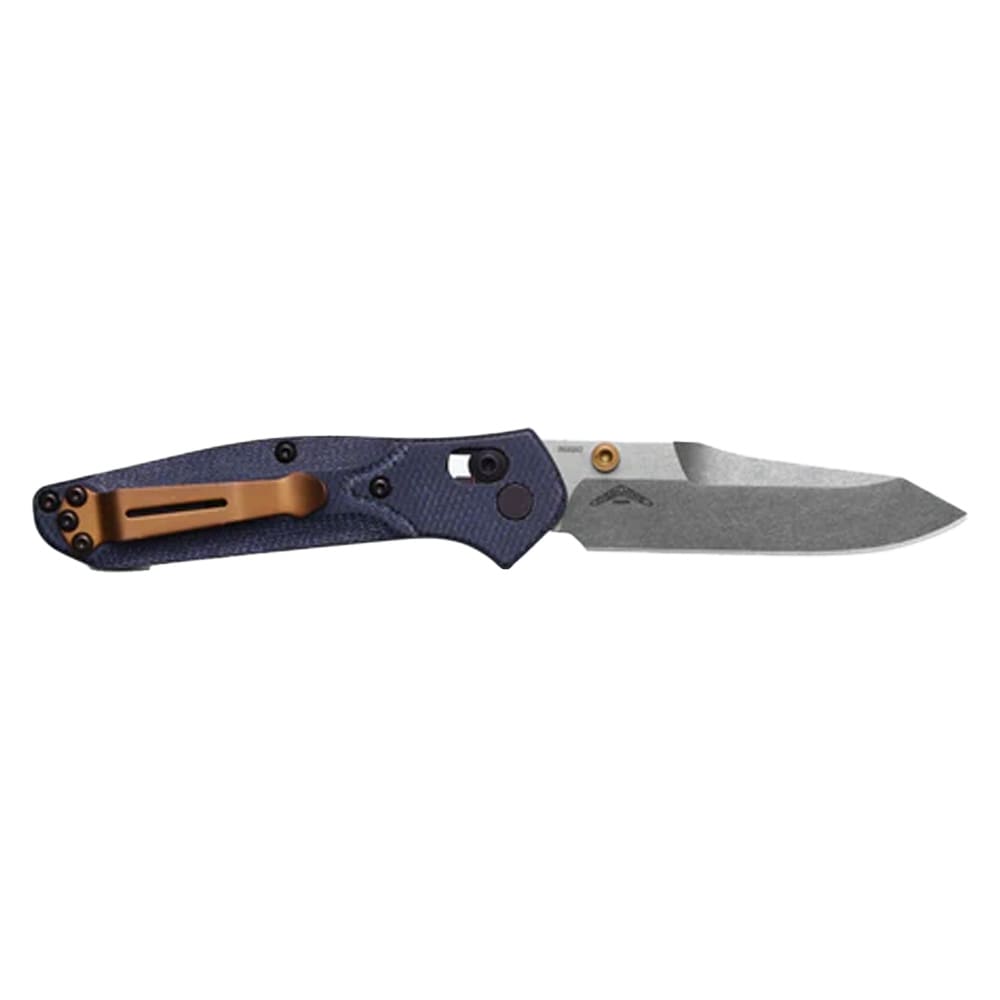 The Benchmade Mini Osborne AXIS Reverse Tanto Denim Micarta Knife 945-04 is a masterful blend of compact utility and refined style, designed for those who demand performance and sophistication in their everyday carry. This knife is a testament to Benchmade's commitment to precision and innovation, offering a nimble, lightweight profile that's perfect for pocket carry without sacrificing cutting power. The reverse tanto blade shape is engineered for accuracy and control, making it a reliable companion for detailed tasks, whether in the field, on the job, or in daily life. The Denim Micarta handle not only adds a unique, modern aesthetic, but also provides a tactile, comfortable grip that stands up to the rigors of daily use. With a robust AXIS locking mechanism, the Mini Osborne ensures a secure, confident feel in hand and effortless, one-handed operation. This knife is the perfect blend of style, strength, and everyday practicality, making it a standout choice for those who appreciate the finer details in their gear.