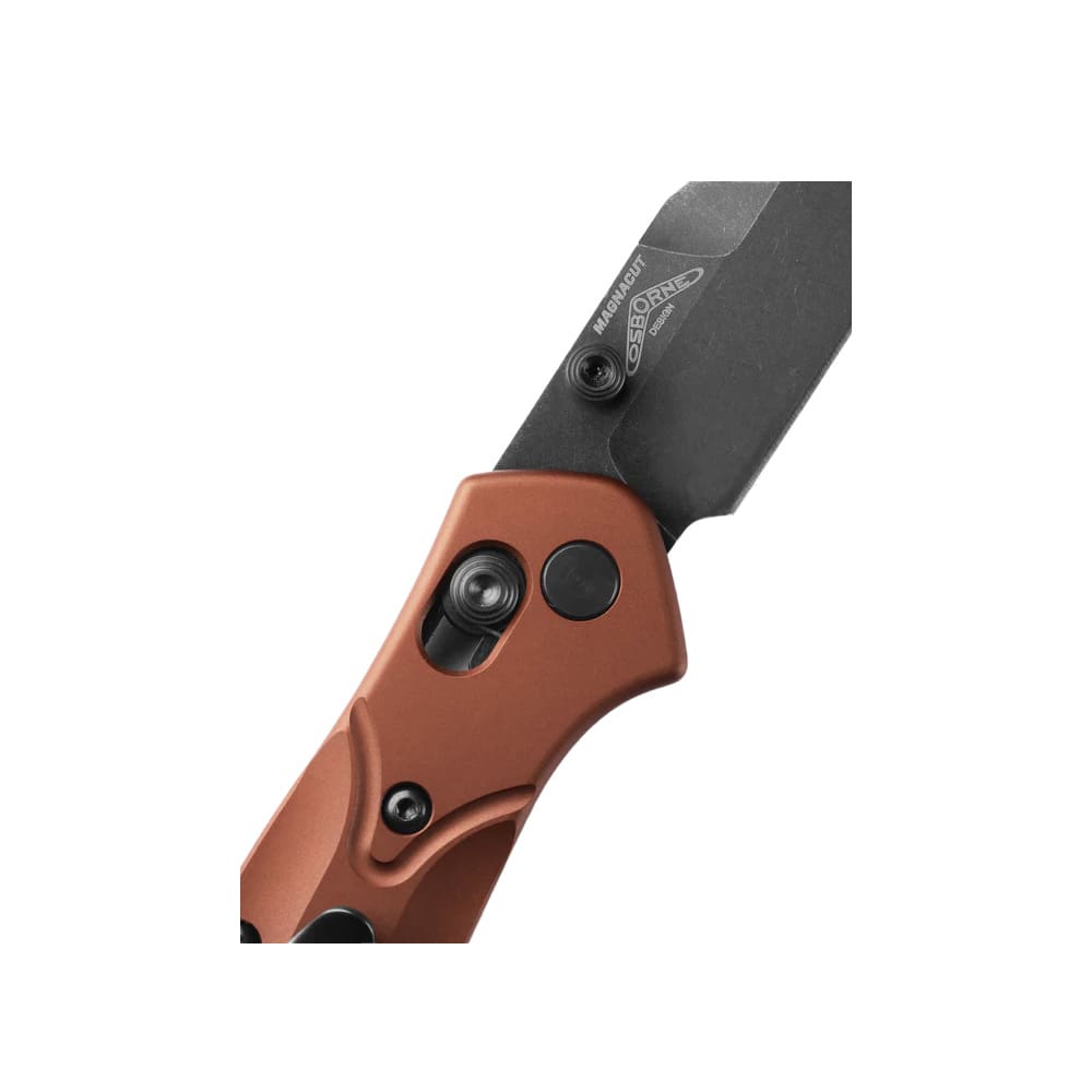 Experience the perfect blend of innovation and style with the Benchmade Osborne AXIS Reverse Tanto Burnt Copper Aluminum Knife 940BK-03. Designed for those who demand both performance and aesthetics, this knife stands out with its striking burnt copper handle and precision-engineered blade. The reverse tanto blade shape delivers exceptional control for detailed tasks, while the AXIS locking mechanism offers effortless, secure operation with just one hand. Crafted for everyday carry, its slim, lightweight profile ensures it's always ready for action, whether you're tackling daily chores or out on an adventure. Built with premium materials, this knife promises reliability and durability you can trust for years to come.