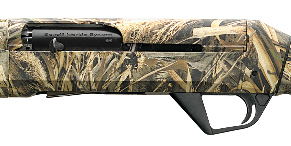 This left-hand Benelli Super Black Eagle II 12-gauge shotgun with a 28" barrel and Realtree Max-5 finish features an ultra-reliable inertia-driven system, ComforTech recoil reduction system, unmatched versatility, and Crio-barrel and choke tubes.