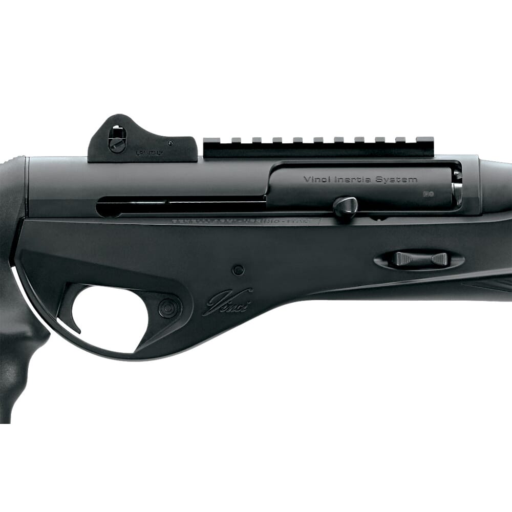 The Benelli Vinci Tactical shotgun takes the successful design of the Vinci Hunting shotgun, and places it into a more combat focused weapon. The barrel is reduced down to a short 18.5 inches and is given a pistol grip. It utilizes an inertia driven system, a common feature on many Benelli shotguns, and will reliably cycle most types of 3” shells, from heavy hitting 00-buckshot to lighter target loads. Its ghost-ring sight system allows for rapid target acquisition and receiver mounted picatinny rail enables an optic to be installed.