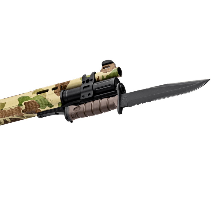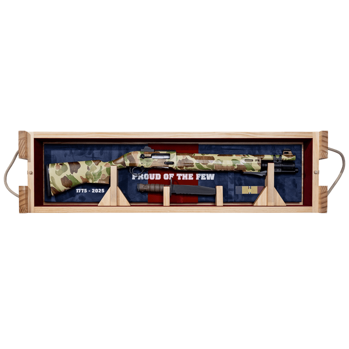 Built to honor 250 years of Marine Corps excellence, the limited-edition Beretta A300 Ultima Patrol Raider blends WWII heritage with modern fighting-shotgun performance. Featuring authentic Frogskin camouflage inspired by the Pacific Theater, this commemorative model pays tribute to the grit and legacy of America's Finest Fighting Force. Based on the proven A300 platform, the Raider integrates oversized controls, aggressive texturing, and a compact 13" LOP for fast handling in tight quarters. Each shotgun includes a USMC-issued OKC 3S bayonet with integral mount, individual serial number, and a custom wooden display crate designed to showcase this rare collector's piece. Whether for defense, patrol, or legacy collection, the Patrol Raider embodies the relentless spirit of the United States Marine Corps.