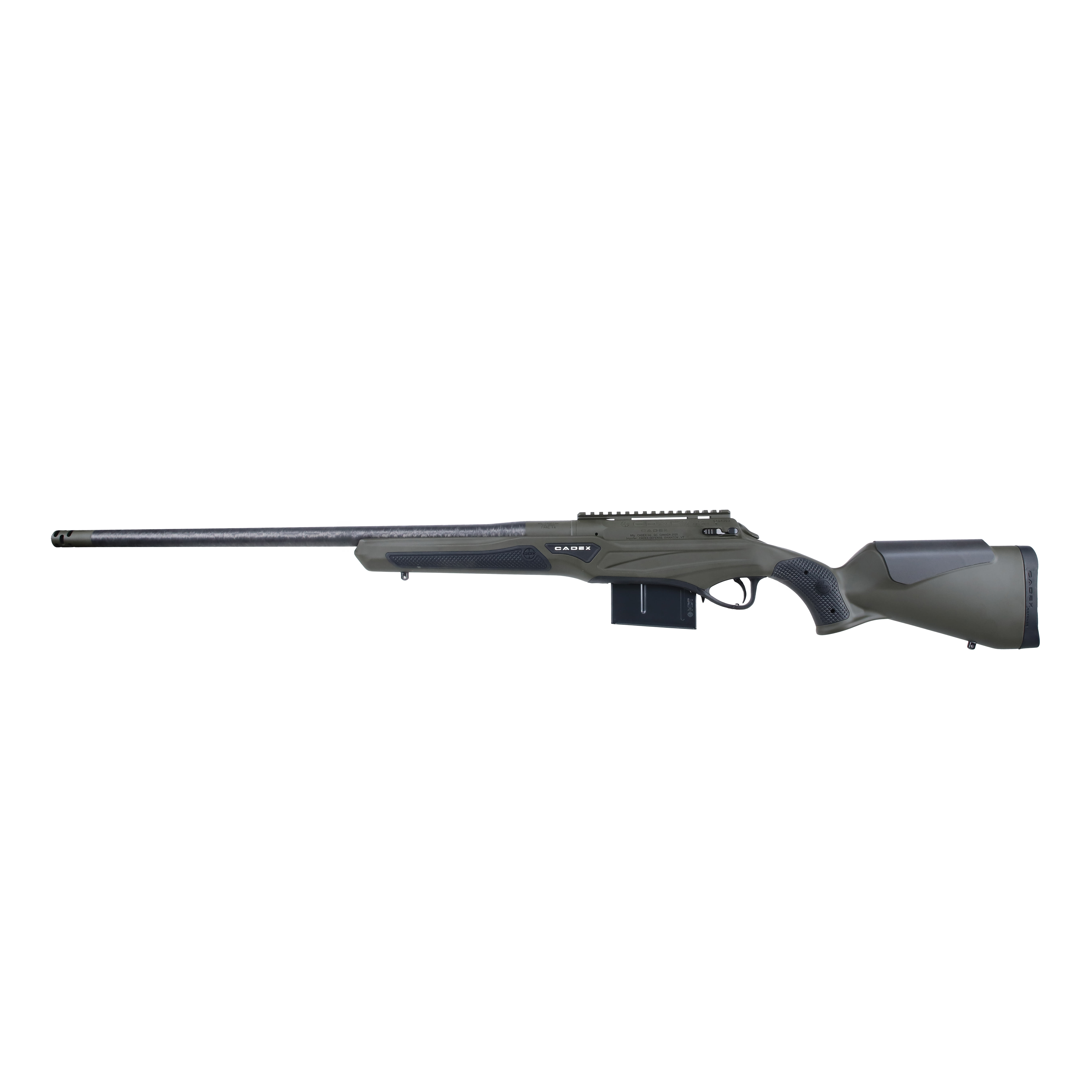 The Cadex Defense CDXR7 CRBN SA is a highperformance boltaction precision rifle chambered in 7mm PRC and built for longrange shooters and serious hunters. Cadex CDXR7-CRBN-3SM-24-DI00-D3E1N-ODG rides on a shortaction chassis finished in OD Green Cerakote and uses a 24″ Bartlein carbonfiber barrel with a 1:8″ twist for an optimal balance of accuracy and reduced weight. The Cadex Defense CDXR7 Rifle features Cadex’s DX2 Evo selectable single or doublestage trigger, a 40 MOA top rail for longrange optics, and the rugged Tundra Strike stock for stability in harsh conditions. It accepts AICSstyle detachable box magazines (one 5round magazine included) and ships opticready—no iron sights are fitted. Confirm final specs and included accessories with Cadex or an authorized dealer before purchase.