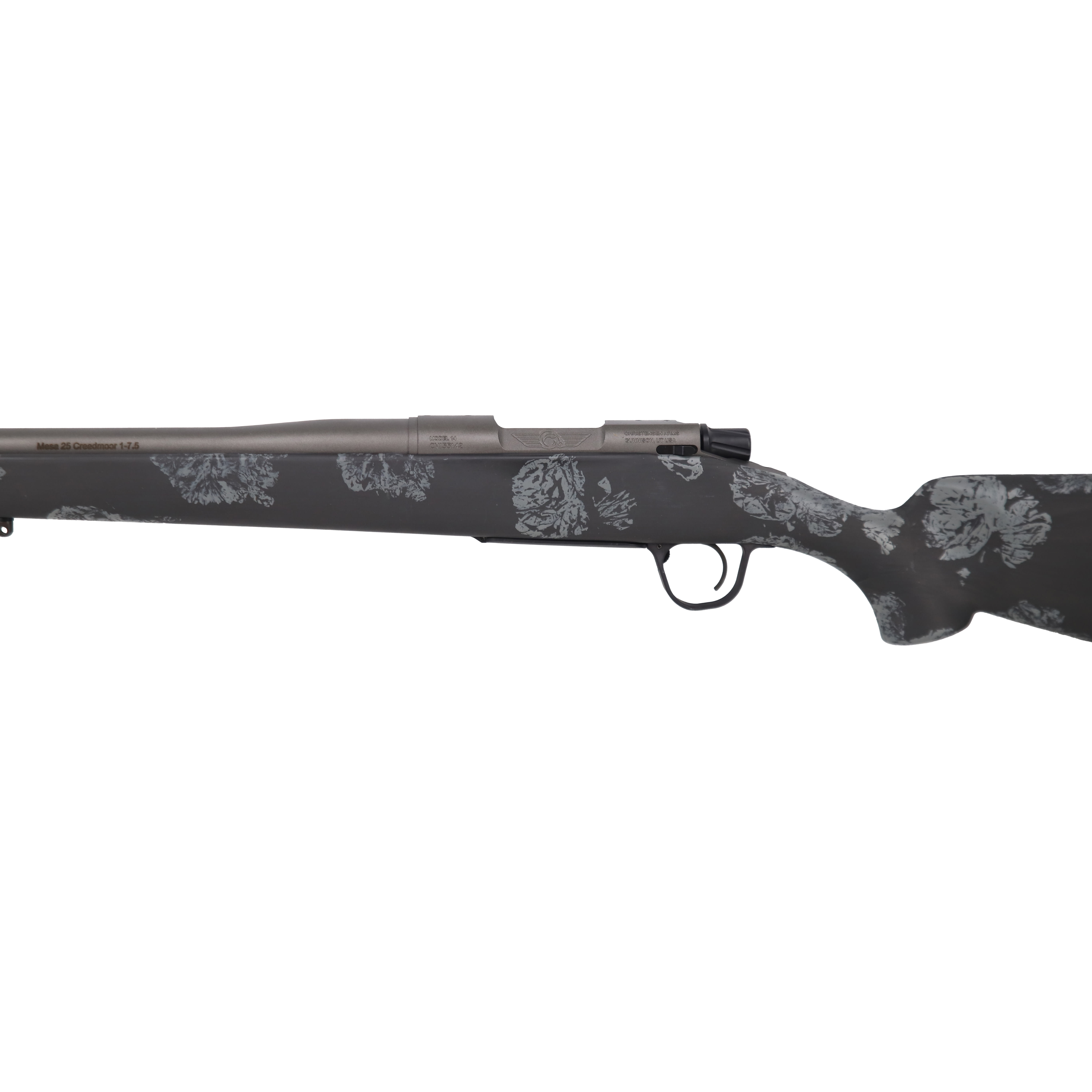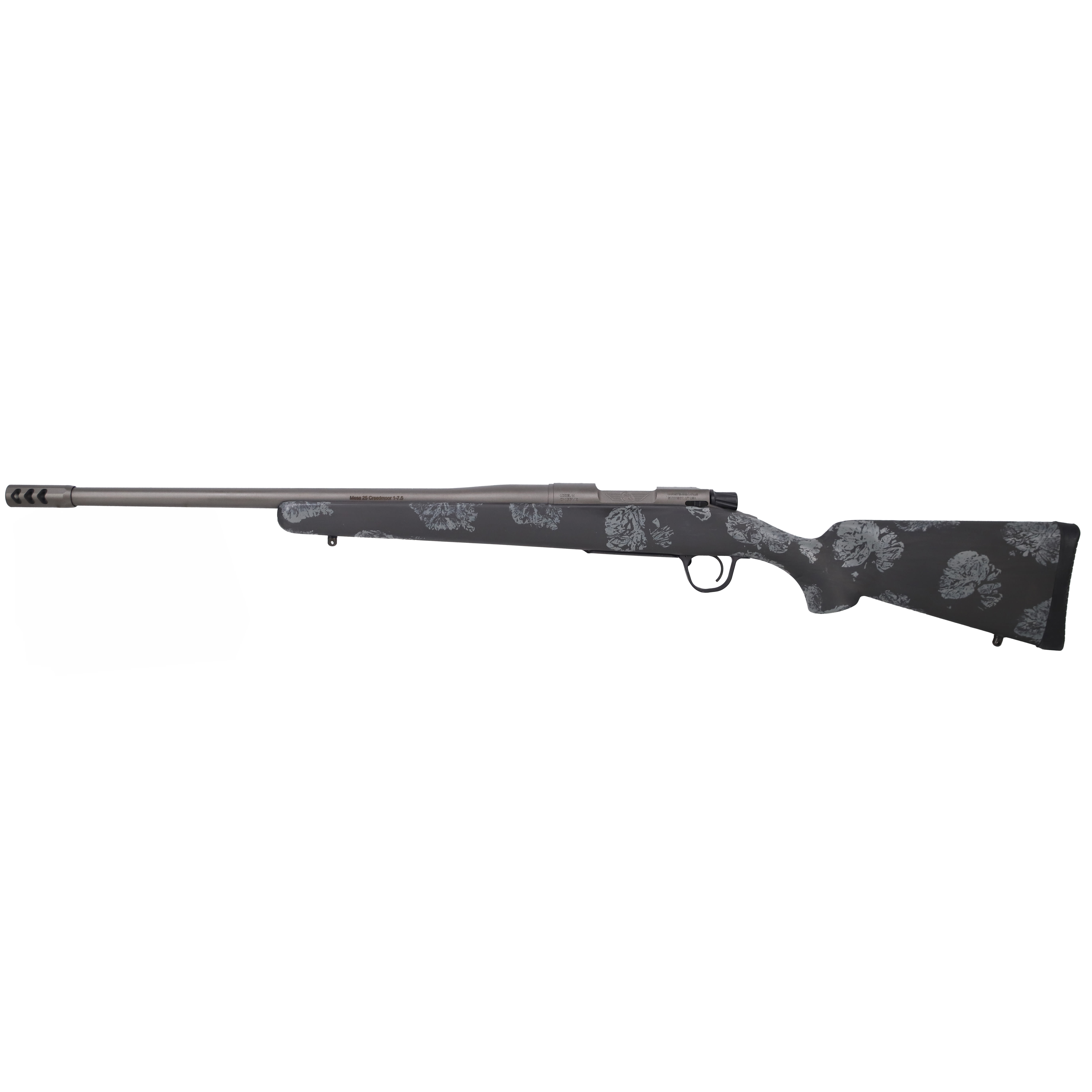 The Christensen Arms Mesa .25 Creedmoor 20" is a lightweight, precision-built bolt-action hunting rifle designed for backcountry use and sub-MOA accuracy. It pairs a 20" featherlight 416R stainless steel barrel with a 1:7.5" twist and 1/2×28 threaded muzzle — ready for a brake or suppressor — with a carbon fiber Sporter FFT stock featuring gray accents that keeps overall weight low while maintaining rigidity and strength. The rifle rides on a precision-machined receiver with an adjustable TriggerTech trigger, internal magazine with hinged floorplate (AICS detachable compatible with an aftermarket kit), and drilled/tapped optics mounting points based on a Remington 700 footprint. With balanced ergonomics, rugged construction, and a featherweight design ideal for deep hikes and diverse terrain, this Mesa .25 Creedmoor delivers dependable field performance and consistent accuracy.