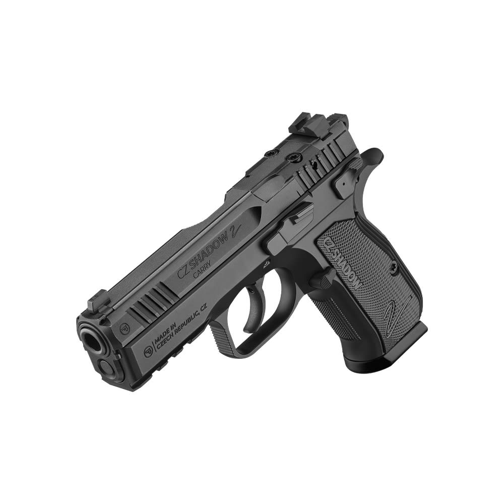 The CZ-USA Shadow 2 Compact Optics-Ready Pistol (Model 01252) is a refined, high-performance handgun built for shooters who demand precision and versatility in a compact form. Chambered in 9mm, it features a 4-inch barrel and a forged aluminum frame that reduces weight without sacrificing durability. Its optics-ready slide allows for easy mounting of red dot sights, while the fiber optic front sight and adjustable rear sight offer excellent visibility and accuracy right out of the box. The pistol includes a low-profile ambidextrous manual safety and an extended magazine release with adjustable positioning for enhanced ergonomics. With a 10-round capacity, slim aluminum grips, and a sleek black finish accented by Flat Dark Earth controls, the Shadow 2 Compact delivers competition-grade performance in a carry-friendly package.