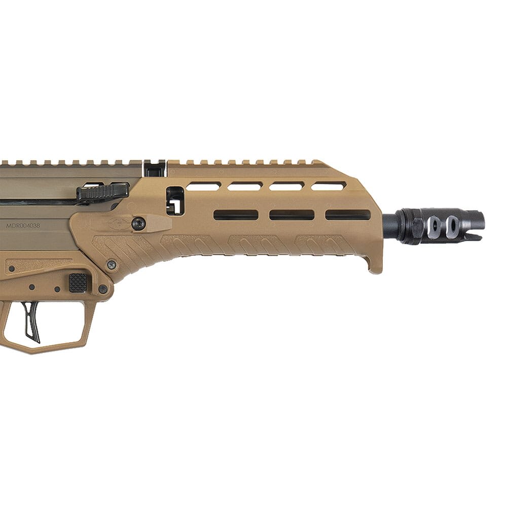 New for 2020, the Desert Tech MDRX, takes the company’s revolutionary bullpup rifle design to the next level. MDRX rifles now feature an upgraded polymer resin formula for enhanced durability against high impact falls. Additionally, gas block drainage on the MDRX has been improved to dramatically increase reliability after submersion in mud and water. The trigger of the MDRX has been improved, providing a lighter pull with less creep. All MDRX rifles now feature the new Ratchet Compensator, which provides excellent control and recoil reduction without subjecting the shooter to gas blowback.