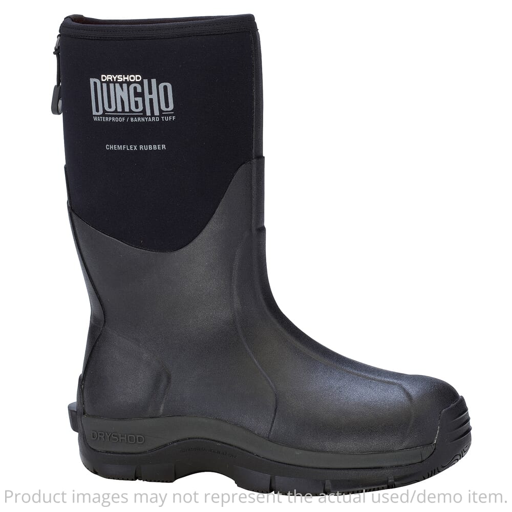 DryShod’s Dungho Boots are built to stand up to the dirtiest, nastiest work you can throw at them. These barnyard tough boots are a full 17” tall for extra coverage while working dirty jobs and an adjustable gusset locking strap to keep out any debris. The Dungho’s shell is composed of six layers of hand-laid rubber, and features the exclusive DS2 outsole – both of which are extremely reiistant to chemicals commonly found on farms such as ammonia, natural acids, gasoline, motor oil, diesel fuel, commercial detergents and diluted muriatic acid. The DS2 outsole itself is designed for use on hard surfaces and features long-wearing outer lugs and highly slip-resistant bi-directional inner lugs in the forefoot and heel areas maximum toe and heel protection with large kick spur for easy-off convenience. Other features include a Hydrokote water-repellent treatment that causes water to roll off and dry almost instantly, making the Dungho Boots 100% waterproof. The 5mm of Densoprene foam insulation keeps the cold out, and genuine natural rubber hand-laid overlays ensure years of durability. Other features include a roll-down calf-pipe for venting in warmer temperatures or tucking you pant legs into, and convenient pullup tabs allows for easy on and off.