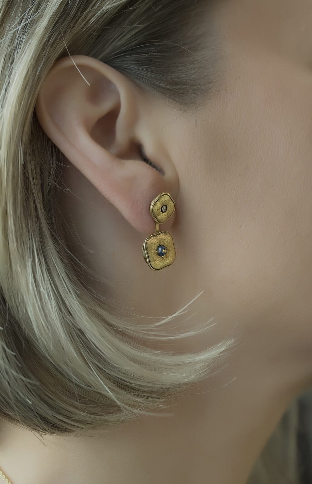 Alex Sepkus 18k, inlayed Cabochon Sapphire and Diamond "Cushion" Earrings. 2 Sapphires 0.50ct, 2 diamonds 0.02ct. Limited Edition.