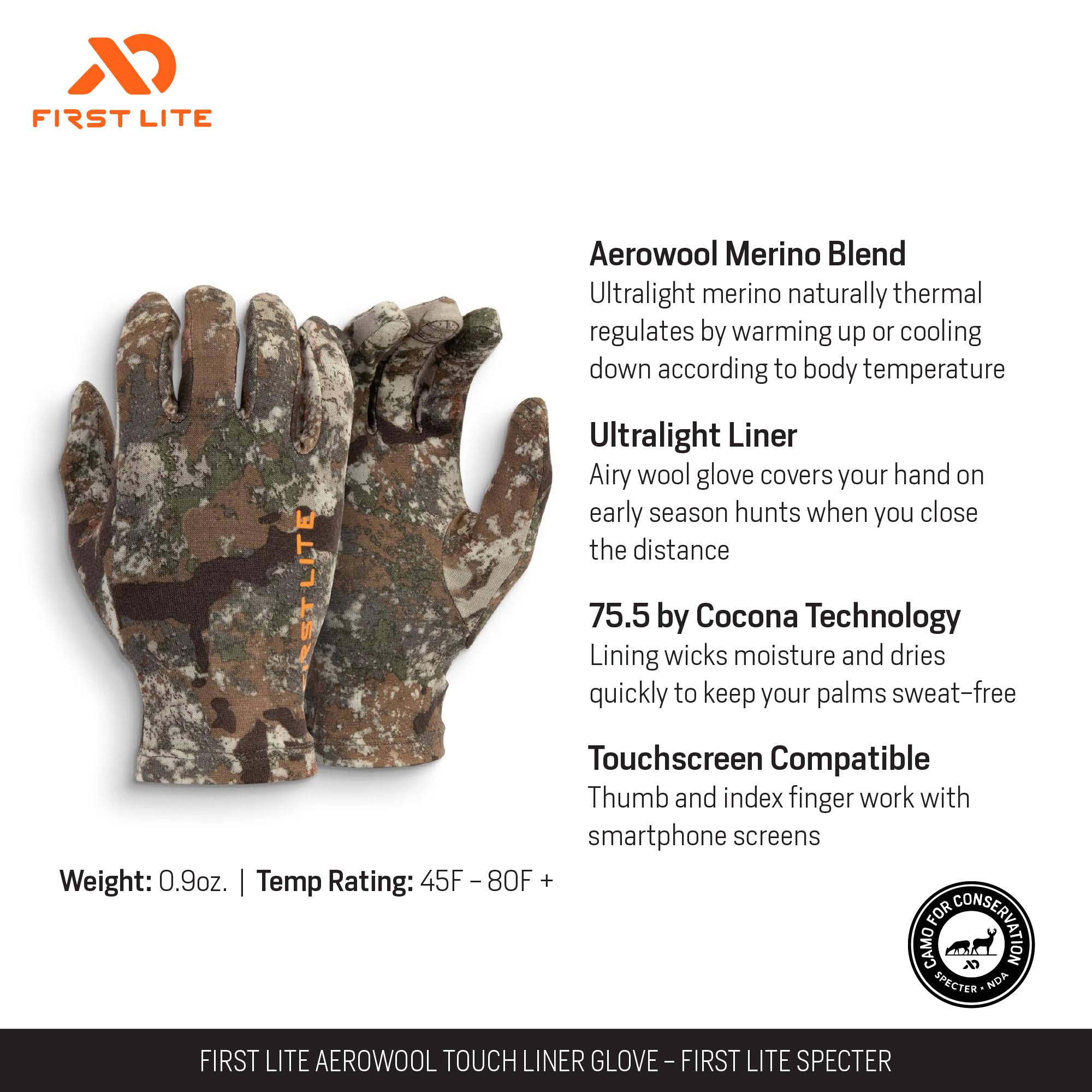 Experience unmatched versatility and comfort with the First Lite Aerowool Touch Liner Glove in Specter. Designed for the active outdoorsman, these gloves deliver the perfect balance of warmth and dexterity, making them ideal for everything from early morning hunts to late-season layering. The Aerowool Touch Liner Glove is crafted to move with you, providing a barely-there feel while still offering the insulation you need in the field. The advanced Aerowool fabric is engineered to wick away moisture and regulate temperature, ensuring your hands stay dry and comfortable, even during high-output activities. Whether you're glassing, hiking, or layering up for a cold-weather pursuit, these gloves are your go-to for reliable performance and seamless device use in the wild.