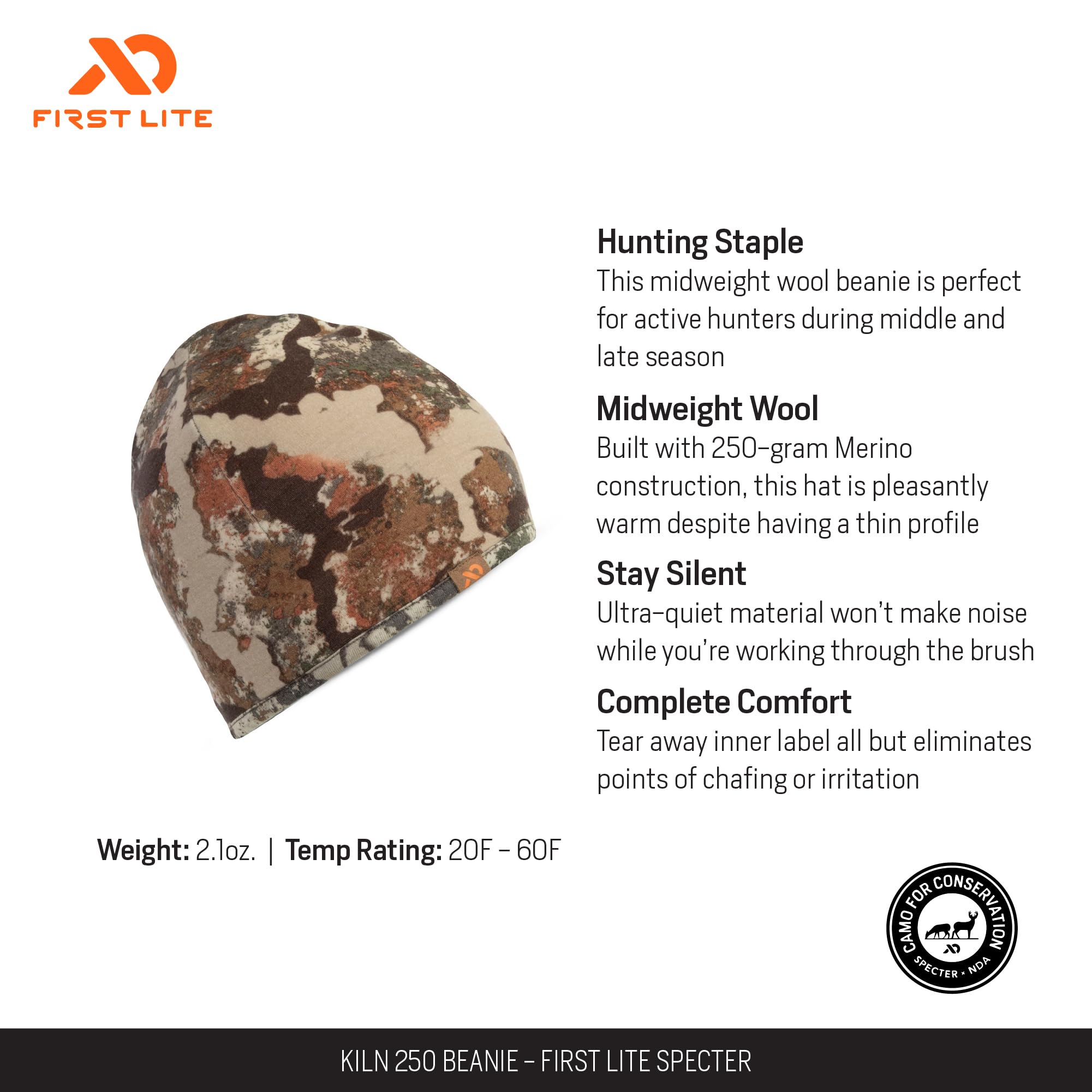 Stay warm and comfortable through the coldest days with the First Lite Kiln 250 Beanie in the versatile Specter colorway. Designed for those who demand both performance and style, this beanie is crafted with premium, durable materials that stand up to the rigors of outdoor adventures and daily wear. Its thoughtful construction ensures a snug, comfortable fit for most, making it a reliable companion whether you're hiking, hunting, or simply braving a chilly morning. The Specter colorway is both modern and adaptable, seamlessly pairing with a wide range of outdoor and casual outfits. Experience the perfect blend of warmth, durability, and style with a beanie that's built for the elements and for everyday life.