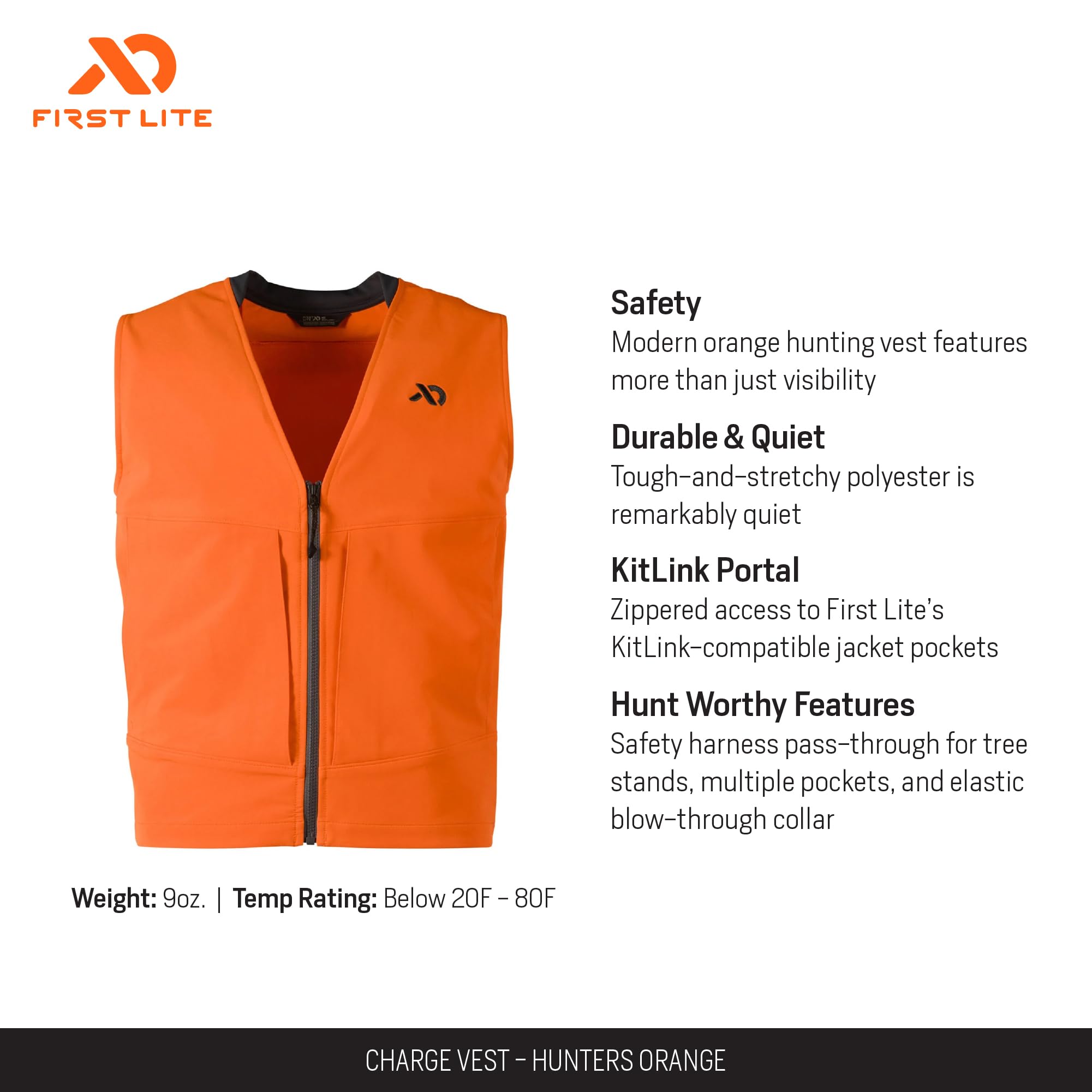 Stay safe and prepared in the field with the First Lite Men's Charge Hunters Orange Vest. Engineered for the dedicated hunter, this vest combines high-visibility with rugged construction, ensuring you remain seen and protected in dense woods and open terrain. Its thoughtful design prioritizes both comfort and practicality, allowing you to move freely and access your gear with ease. Whether you're tracking game or waiting in your stand, this vest is built to support your hunt from dawn to dusk.