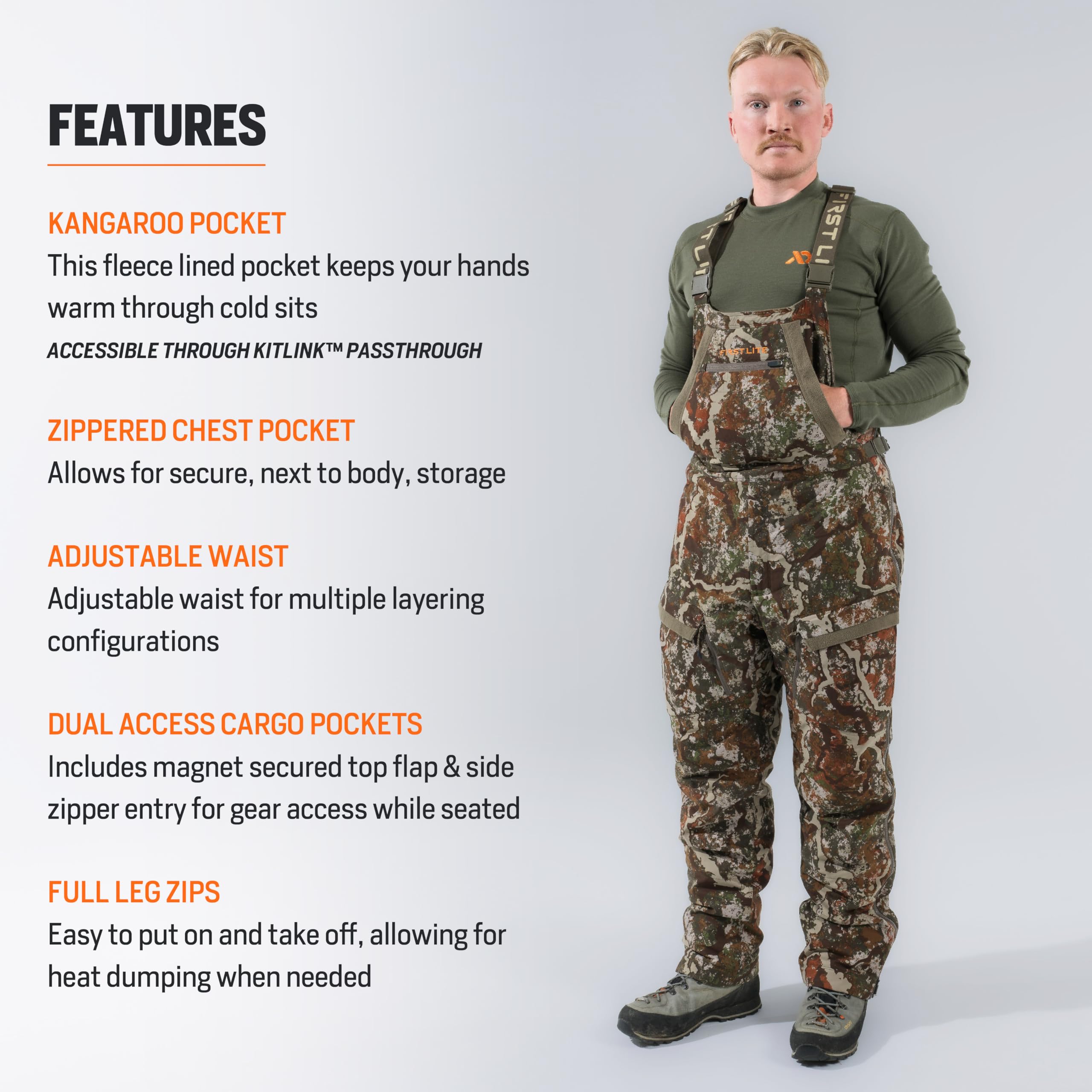 Engineered for those who refuse to let cold weather slow them down, the First Lite Men's Core Insulated Bib Pant in Specter delivers the ultimate in warmth, durability, and comfort for demanding outdoor pursuits. Designed to keep you moving in frigid conditions, the Core Bib Pant features advanced weather-resistant Specter fabric, shielding you from the elements while standing up to the rigors of the field. Core insulation technology ensures you stay warm without the added bulk, allowing for full mobility whether you're hiking, hunting, or working outdoors. Adjustable bib straps provide a tailored, secure fit, so you can focus on the adventure ahead. Built for those who demand performance and reliability, this bib pant is the cold weather essential for any serious outdoorsman.