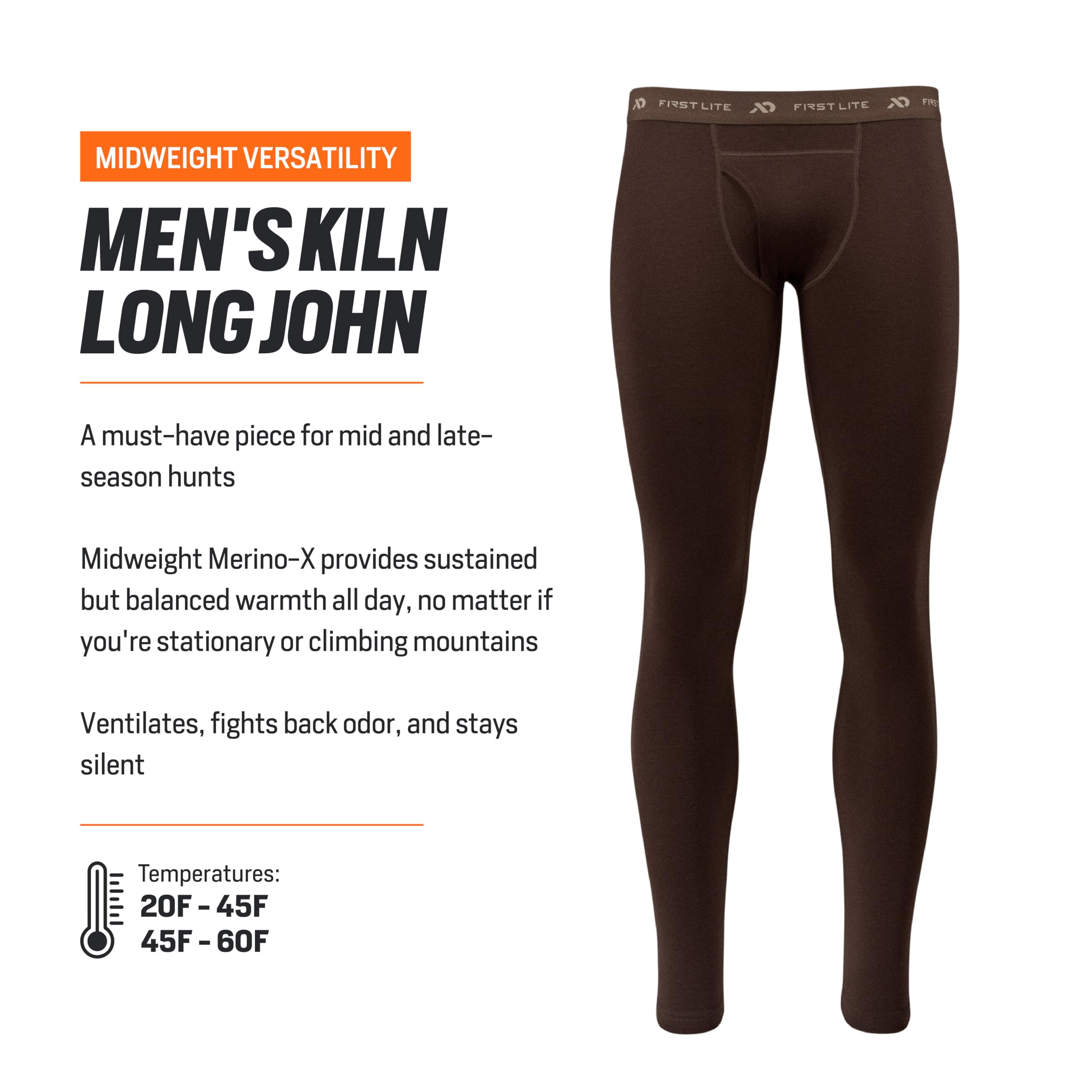 Experience unmatched warmth and comfort during your cold-weather pursuits with the First Lite Men's Kiln Long John. Engineered with the modern outdoorsman in mind, these long johns are crafted from advanced Terra fabric, delivering the perfect blend of durability and moisture management. Whether you're hiking, hunting, or working outdoors, the Kiln Long John ensures you stay dry and insulated, even in the harshest conditions. The various sizing options offer a relaxed, non-restrictive fit, making it ideal for layering under your favorite gear. Designed for those who demand performance and comfort, these long johns are your go-to base layer for any cold-weather adventure.