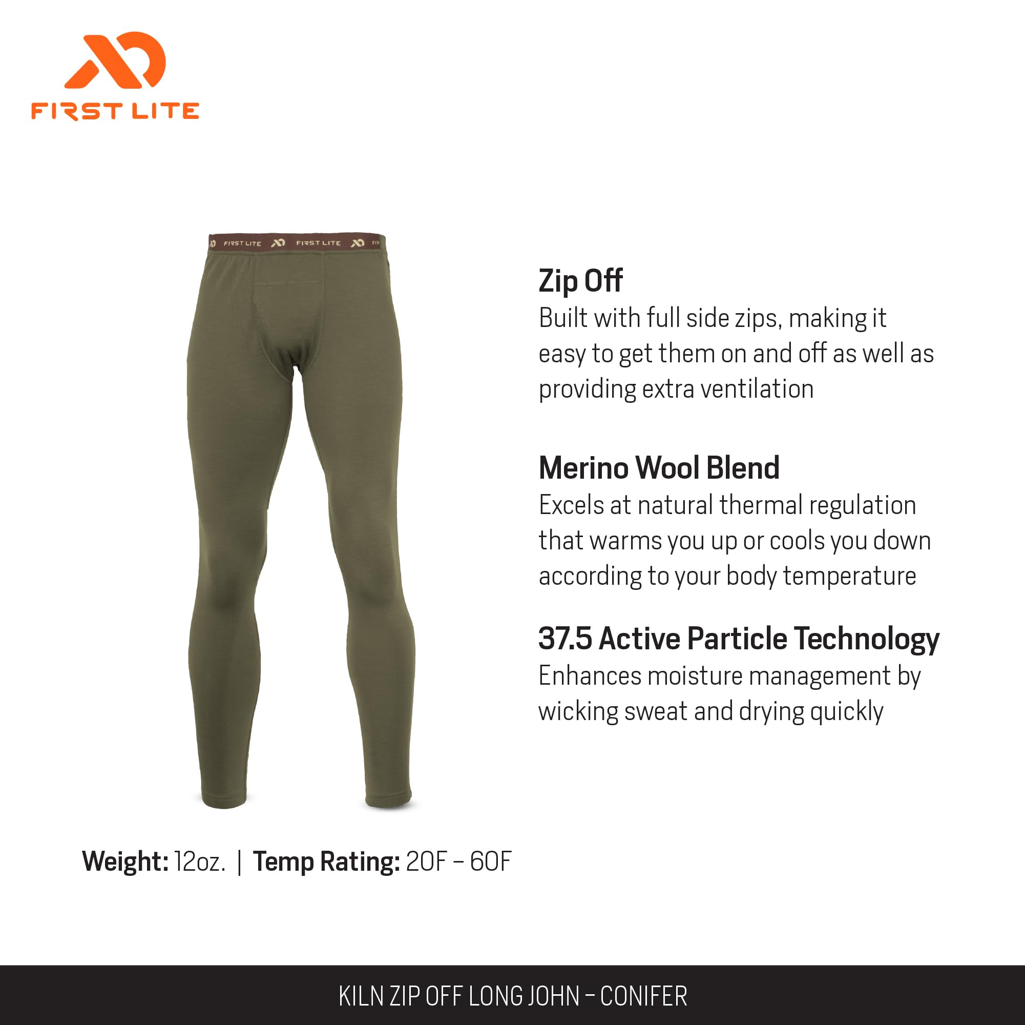 First Lite Men's Kiln Zip-Off Long John Conifer MBZLJCN