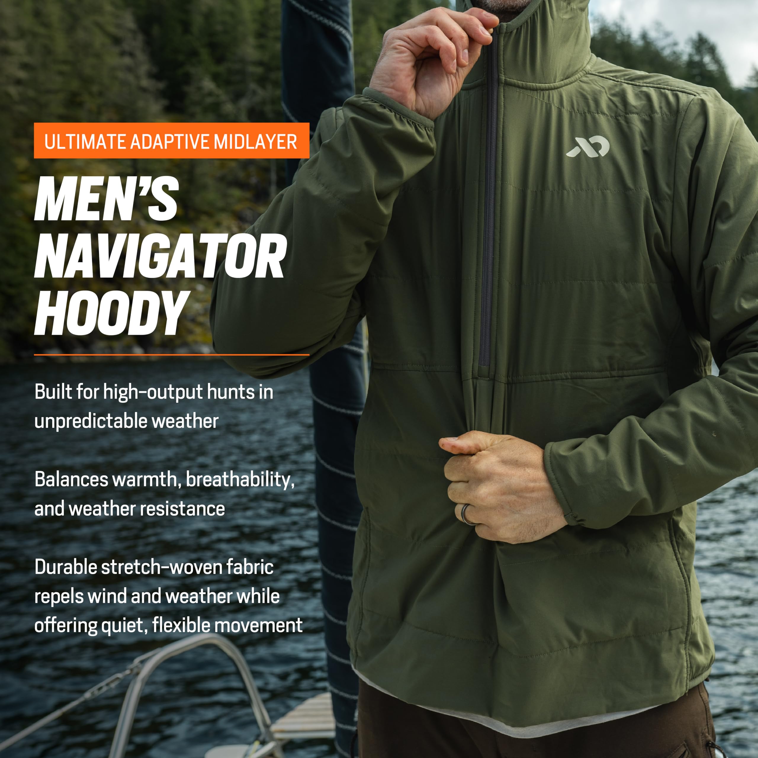 Engineered for those who demand performance and comfort in the outdoors, the First Lite Men's Navigator Hoody in Conifer green is the perfect companion for your next adventure. Whether you're hiking, camping, or simply enjoying the crisp air, this hoody is built to withstand the elements and keep you comfortable. Its relaxed fit and thoughtful design allow for unrestricted movement, making it ideal for active pursuits or layering in unpredictable weather. The adjustable hood offers extra protection when the wind picks up, and the premium materials ensure lasting durability, season after season. The Navigator Hoody is your go-to for reliable warmth and effortless style in the wild.