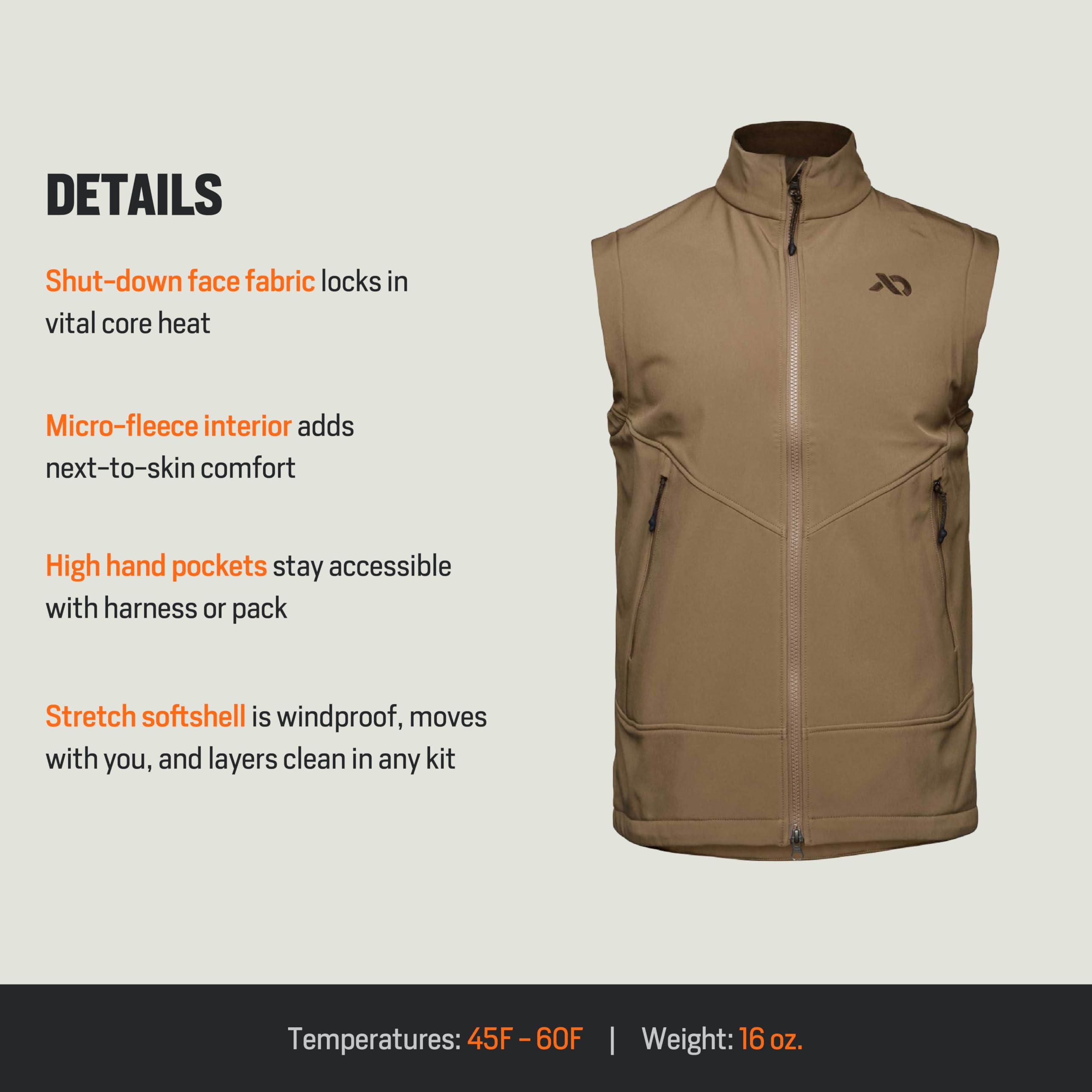 Engineered for the outdoorsman who demands both performance and comfort, the First Lite Men's Suppressor Soft Shell Vest is the perfect companion for unpredictable weather and active pursuits. Its advanced construction is designed to move with you, offering unrestricted mobility whether you're hiking, scouting, or layering up for a chilly morning. The Dry Earth color blends seamlessly with natural surroundings, making it a smart choice for both the field and the trail. Sized for a relaxed, comfortable fit, this vest is ideal for layering, providing just the right amount of warmth and wind resistance without the bulk. Experience the perfect balance of rugged durability and everyday comfort, making this vest a staple for any outdoor adventure.