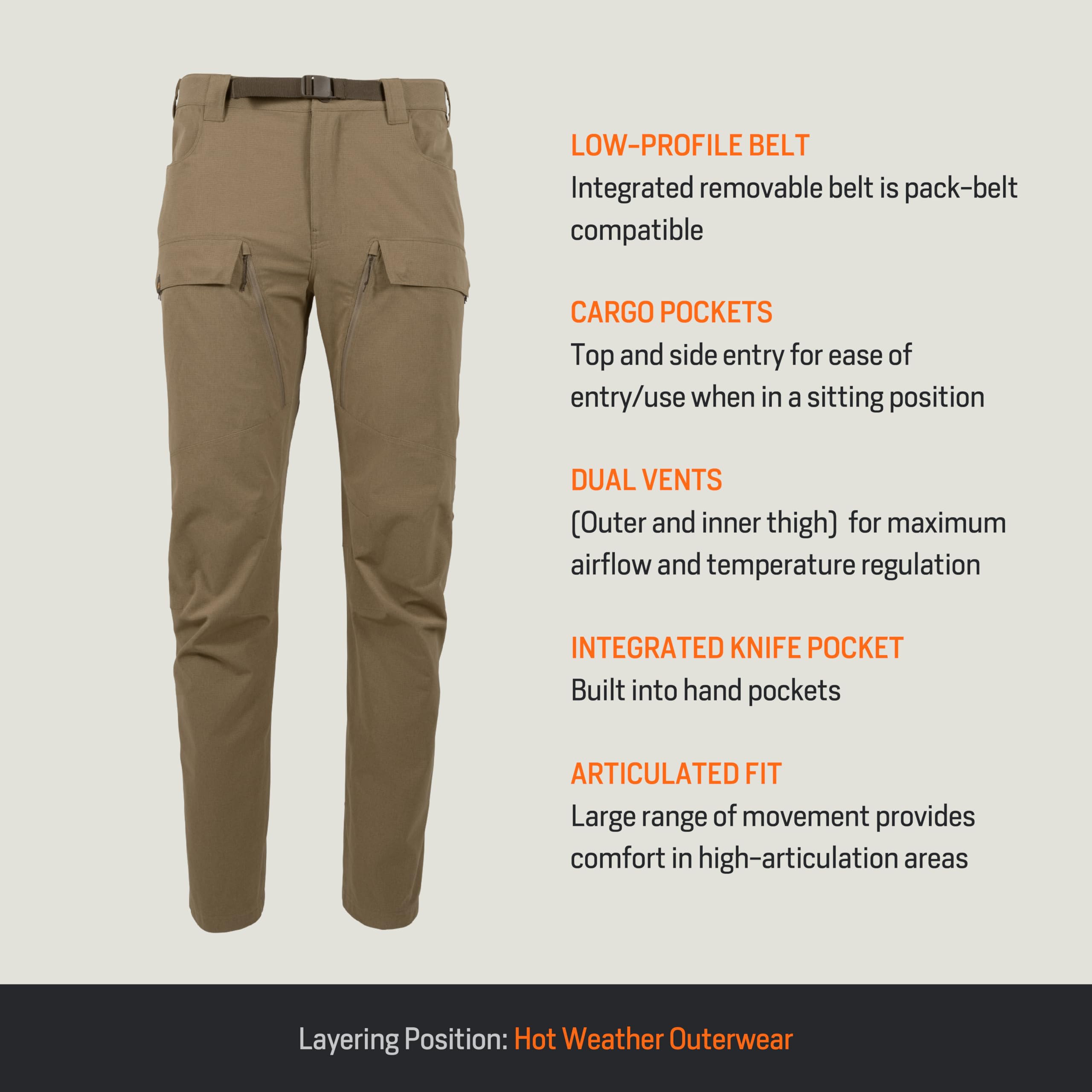 Engineered for the demands of the wild, the First Lite Men's Trace Pant in Dry Earth is the ultimate companion for the modern outdoorsman. Whether you're trekking rugged trails, stalking game, or navigating dense underbrush, these pants deliver the resilience and comfort you need. The Trace Pant is crafted for those who refuse to compromise, offering a lightweight, breathable feel that keeps you cool and dry, even during the most strenuous pursuits. The Dry Earth color blends seamlessly with a variety of natural landscapes, ensuring you stay concealed and stylish. Thoughtfully designed with ample storage, these pants keep your essentials secure and within reach, so you can focus on the adventure ahead. Experience the freedom of movement and the confidence that comes with gear built to perform in the toughest conditions.