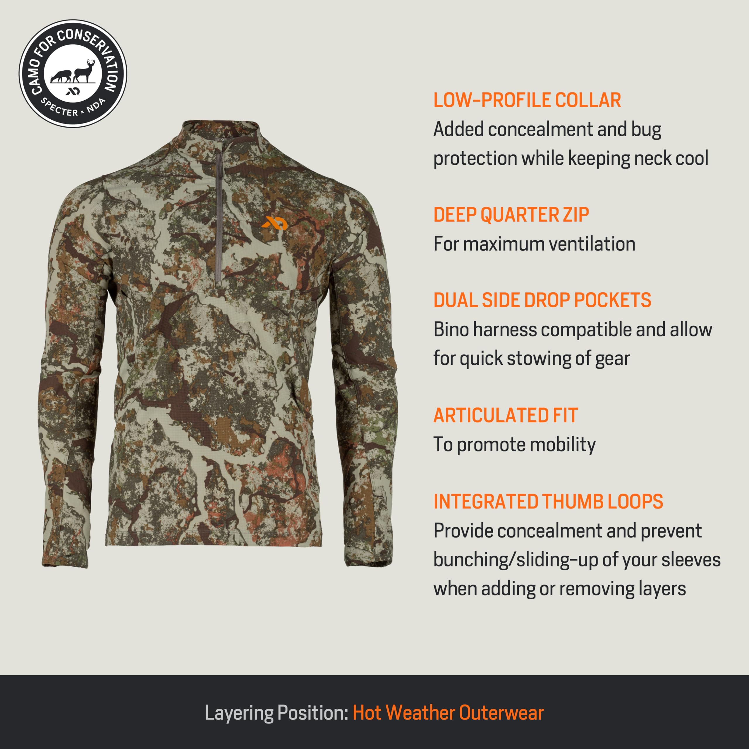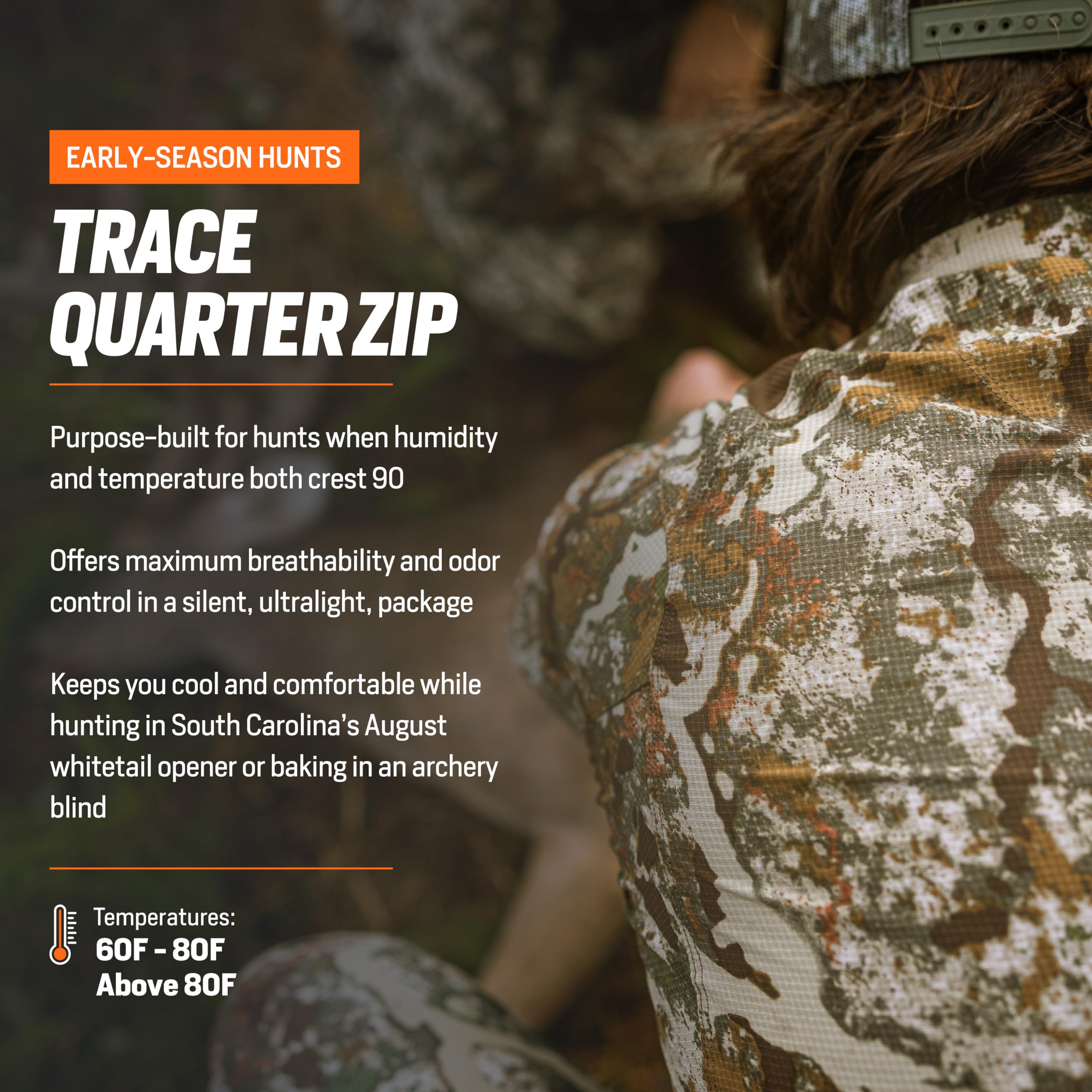 Engineered for those who demand performance and versatility in the outdoors, the First Lite Men's Trace QZ Specter jacket is the perfect companion for your next adventure. Whether you're hiking rugged trails, setting up camp, or layering for a chilly morning hunt, this jacket is designed to keep up. Its advanced, lightweight construction ensures you stay comfortable and agile, while the breathable fabric wicks away moisture to keep you dry and focused. The jacket's modern, athletic cut and stylish design make it a seamless addition to your outdoor wardrobe, and the zippered front allows for quick temperature regulation and easy layering. Built to withstand the elements, this jacket is as tough as it is comfortable, making it a reliable choice for any outdoor pursuit.
