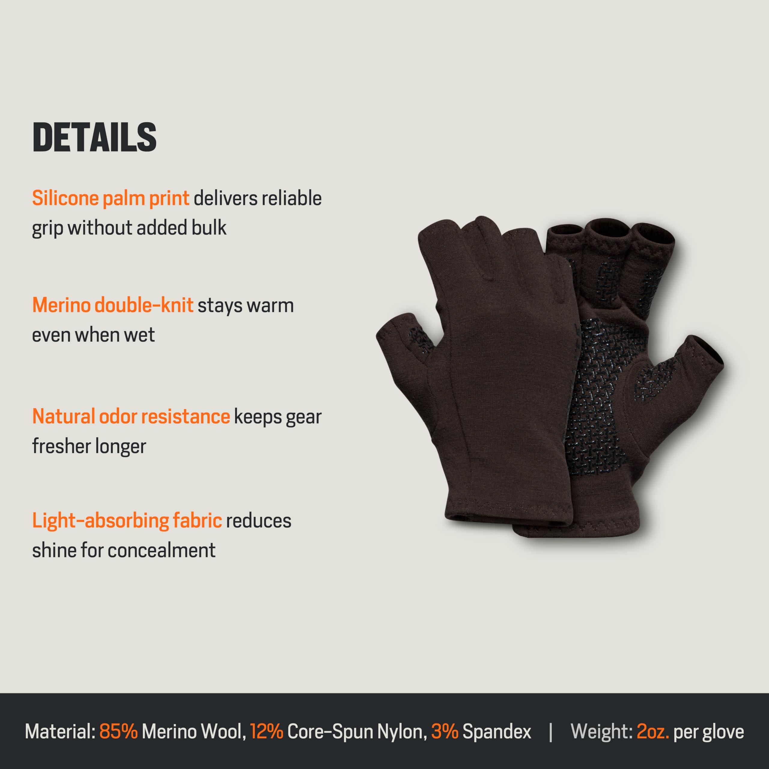 Experience unmatched comfort and functionality with the First Lite Rugged Wool Fingerless Glove. Crafted for the dedicated outdoors enthusiast, these gloves combine the natural insulating power of wool with a design that keeps your hands agile and ready for any task. Whether you're glassing for game, tying a lure, or navigating your GPS, the fingerless cut ensures you never sacrifice dexterity or the ability to use your devices. The earthy Terra color blends seamlessly with natural surroundings, making these gloves a subtle yet essential addition to your cold-weather gear. Sized for a comfortable, secure fit, they're the perfect companion for brisk mornings, late-season hunts, or any adventure where warmth and utility are a must.