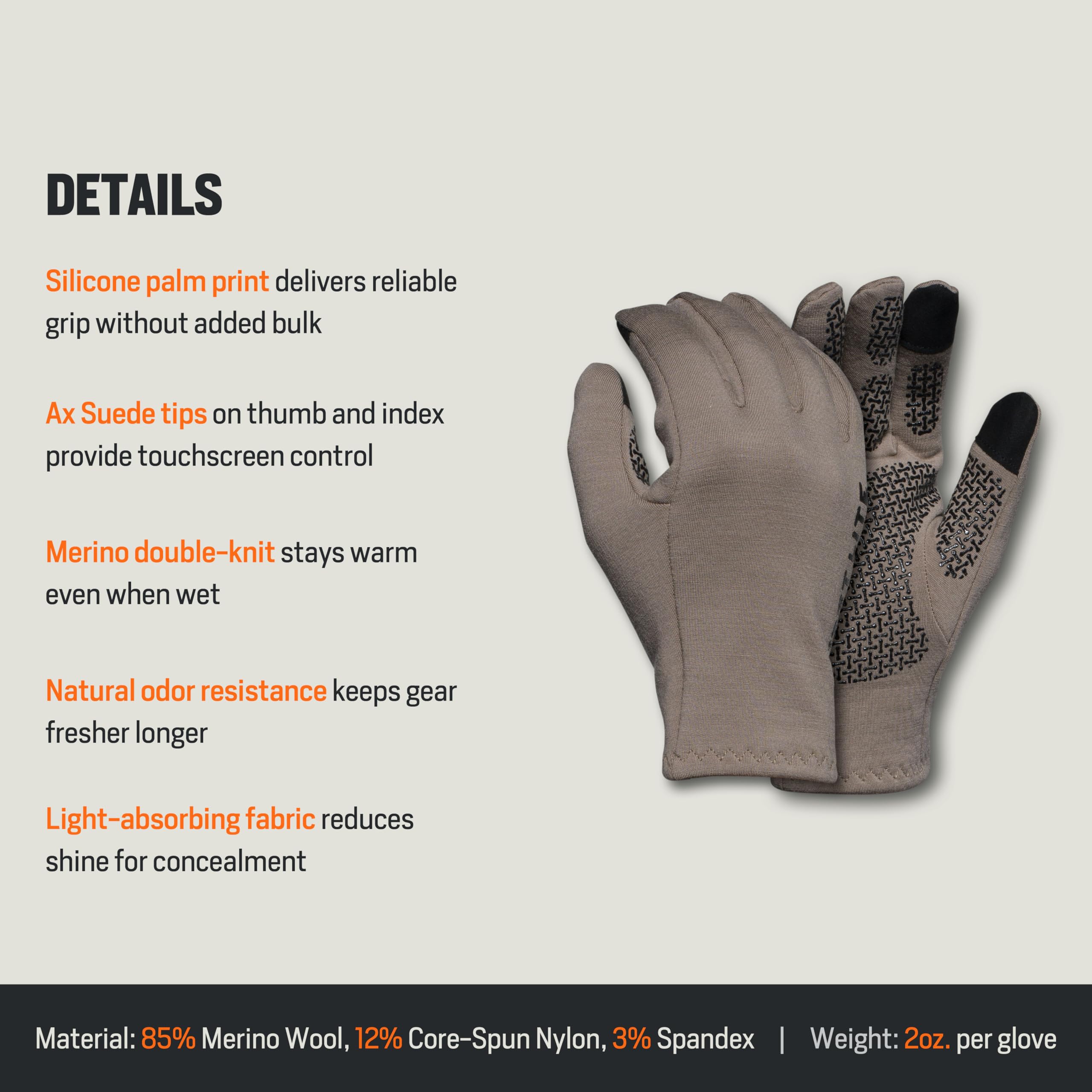 Engineered for those who demand both performance and comfort in the harshest conditions, the First Lite Rugged Wool Fleece Glove in Walnut is the ultimate companion for outdoor enthusiasts. Crafted to withstand the rigors of the wild, this glove seamlessly blends the natural insulating power of wool with the resilience of fleece, ensuring your hands stay warm and protected. The Walnut color delivers a timeless, understated style that transitions effortlessly from the field to the campfire. Designed for a secure, comfortable fit, this glove is perfect for extended wear during hunting, hiking, or any cold-weather pursuit. The soft, breathable material keeps your hands comfortable and dry, even during high-output activities, so you can stay focused on the adventure ahead.