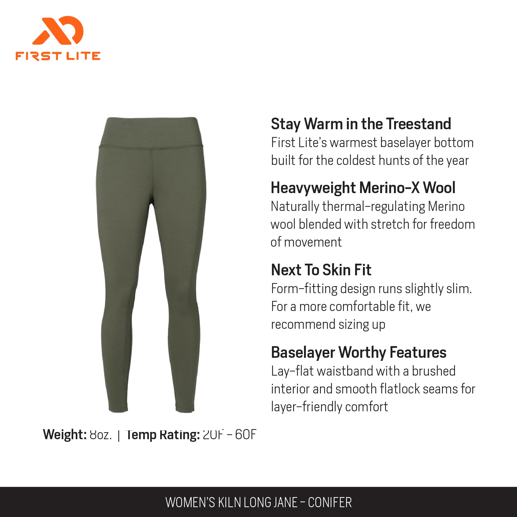 Experience unmatched comfort and performance on your next adventure with the First Lite Women's Kiln Long Jane 2.0 Pant. Designed for the active outdoorswoman, these pants blend technical innovation with a flattering, athletic silhouette. The Kiln Long Jane 2.0 Pant is crafted for those who demand both durability and breathability, ensuring you stay comfortable and dry, whether you're hiking, camping, or layering up for a chilly morning. The thoughtfully engineered fit moves with you, providing the freedom you need for every stride, climb, or stretch. With secure pockets for your essentials, you can focus on the journey ahead, knowing your valuables are safe and accessible. The Conifer color adds a touch of natural style, making these pants a versatile staple for every outdoor wardrobe.