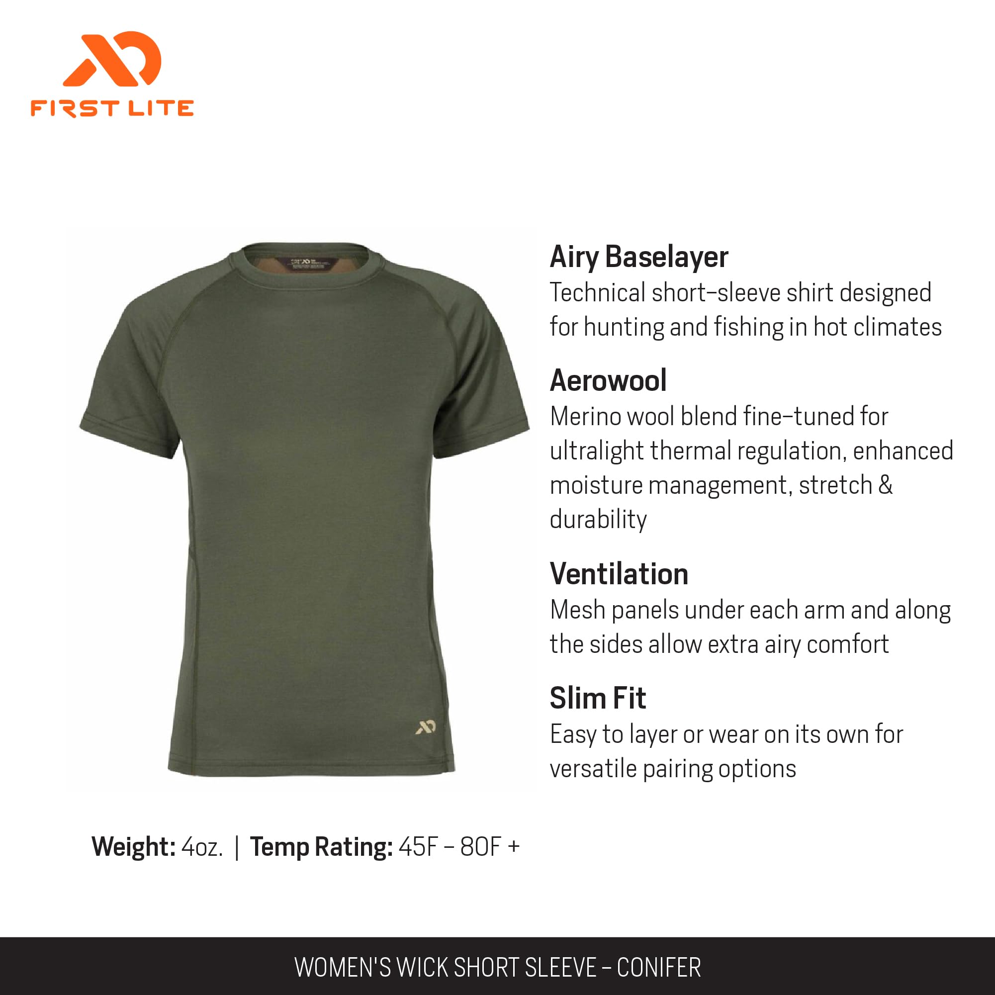 Experience unmatched comfort and performance on your next adventure with the First Lite Women's Wick Short Sleeve 2.0. Designed with the active outdoorswoman in mind, this shirt seamlessly blends technical performance with a flattering, feminine fit. The conifer green hue evokes the tranquility of the forest, making it a stylish and versatile choice for any outdoor setting. Whether you're trekking up a sun-drenched trail, setting up camp, or enjoying a casual day in the park, the Wick Short Sleeve 2.0 keeps you cool and dry, allowing you to focus on the journey ahead. Its advanced fabric technology and thoughtful design ensure you stay comfortable, even in the warmest conditions, making it a must-have for your warm-weather wardrobe.