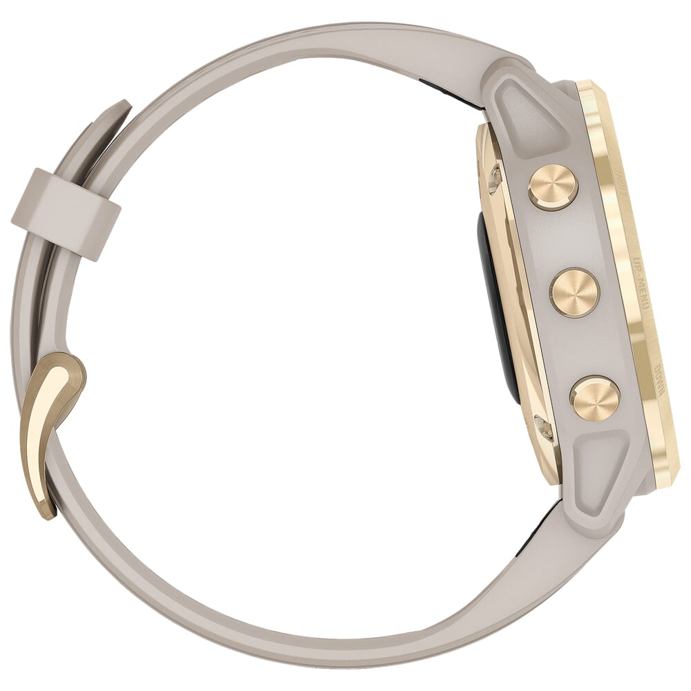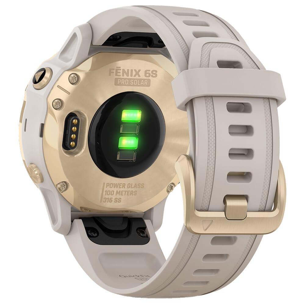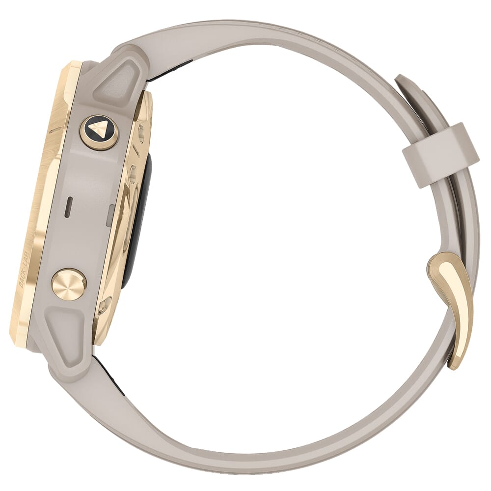 The fenix 6S Pro Solar Smartwatch by Garmin was designed for athletes, adventurers, and other individuals with active outdoor lifestyles. It comes equipped with Multi-GNSS Support, allowing the user to access GPS, GLONASS, and Galileo global navigational satellite systems for more accurate navigational abilities than GPS alone. The fenix 6S Pro also features an advanced set of ABC Sensors which includes an altimeter to display elevation data, a barometer for weather monitoring, and a 3-axis digital compass. Navigational abilities aside, the fenix 6S Pro comes outfitted with a wide array of additional sensors and preloaded apps to get you the most out of your workout and an extra edge in the field. These include Respiration Tracking to monitor your breathing throughout the day and the Pulse OX Sensor, which uses light beams at your wrist to gauge how well your body is absorbing oxygen – good for altitude acclimation and sleep monitoring. Other performance monitoring sensors include the Wrist-Based Heart Rate feature which constantly samples your heart rate and alerts you if it stays too high or too low during periods of rest, and the built in Recovery Time feature that lets you know when you’re ready for another hard workout. The fenix 6S Pro also includes the Body Battery Energy Monitor that takes into account heart rate variability, stress, sleep and other data to help you optimize your body’s energy reserves, and the Hydration Tracking app that keeps track of your daily fluid intake, estimates your body’s sweat loss and sends reminders to keep hydrated.