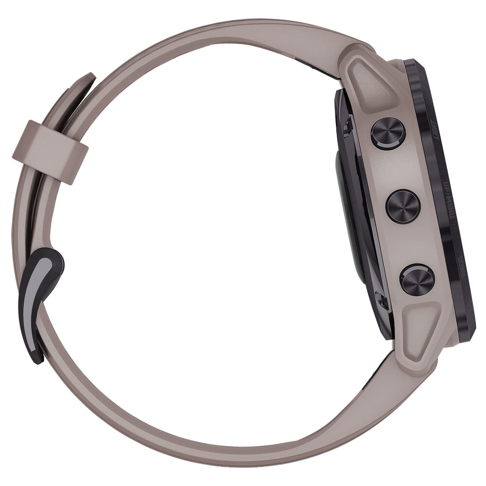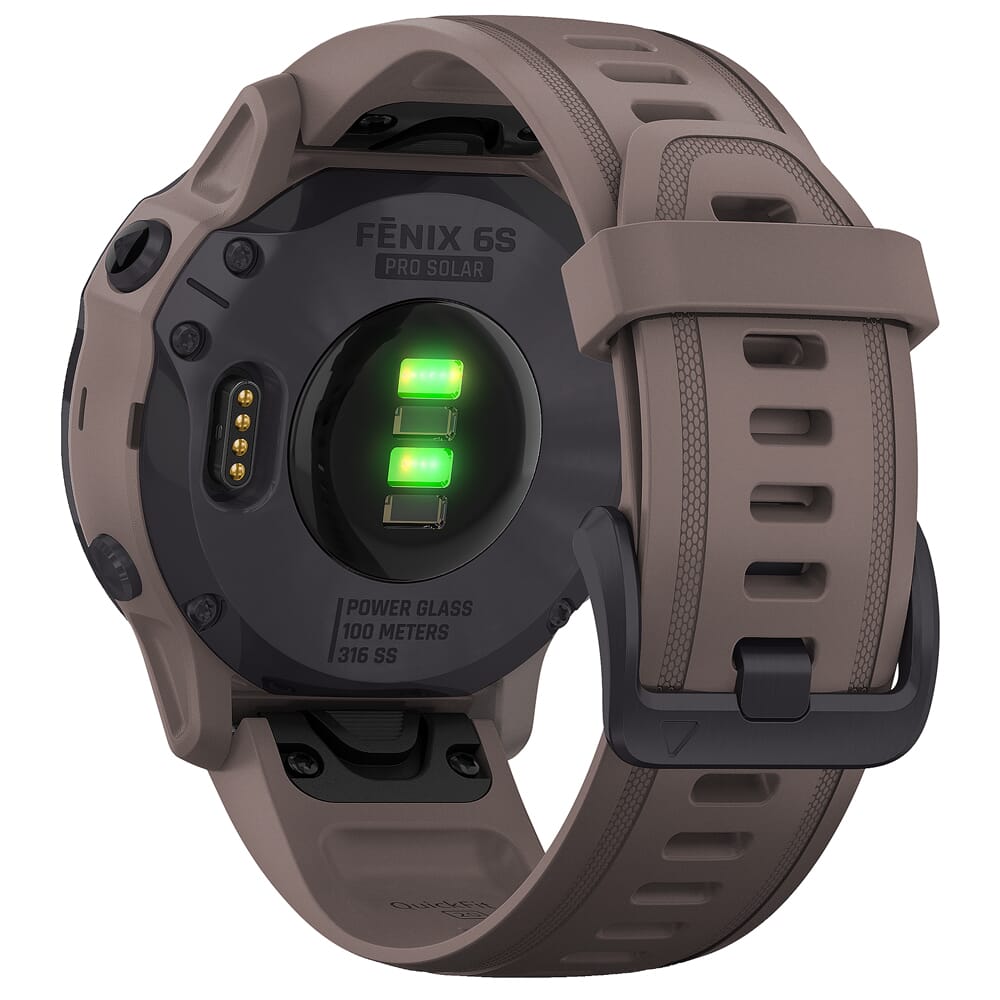 The fenix 6S Pro Solar Smartwatch by Garmin was designed for athletes, adventurers, and other individuals with active outdoor lifestyles. It comes equipped with Multi-GNSS Support, allowing the user to access GPS, GLONASS, and Galileo global navigational satellite systems for more accurate navigational abilities than GPS alone. The fenix 6S Pro also features an advanced set of ABC Sensors which includes an altimeter to display elevation data, a barometer for weather monitoring, and a 3-axis digital compass. Navigational abilities aside, the fenix 6S Pro comes outfitted with a wide array of additional sensors and preloaded apps to get you the most out of your workout and an extra edge in the field. These include Respiration Tracking to monitor your breathing throughout the day and the Pulse OX Sensor, which uses light beams at your wrist to gauge how well your body is absorbing oxygen – good for altitude acclimation and sleep monitoring. Other performance monitoring sensors include the Wrist-Based Heart Rate feature which constantly samples your heart rate and alerts you if it stays too high or too low during periods of rest, and the built in Recovery Time feature that lets you know when you’re ready for another hard workout. The fenix 6S Pro also includes the Body Battery Energy Monitor that takes into account heart rate variability, stress, sleep and other data to help you optimize your body’s energy reserves, and the Hydration Tracking app that keeps track of your daily fluid intake, estimates your body’s sweat loss and sends reminders to keep hydrated.