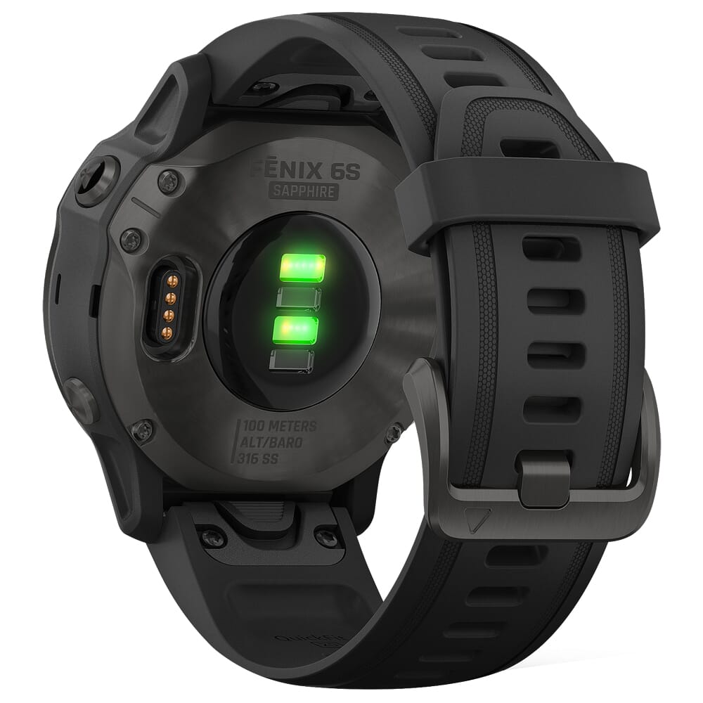 The fenix 6S Smartwatch by Garmin was designed for athletes, adventurers, and other individuals with active outdoor lifestyles. It comes equipped with Multi-GNSS Support, allowing the user to access GPS, GLONASS, and Galileo global navigational satellite systems for more accurate navigational abilities than GPS alone. The fenix 6S also features an advanced set of ABC Sensors which includes an altimeter to display elevation data, a barometer for weather monitoring, and a 3-axis digital compass. Navigational abilities aside, the fenix 6S comes outfitted with a wide array of additional sensors and preloaded apps to get you the most out of your workout and an extra edge in the field. These include Respiration Tracking to monitor your breathing throughout the day and the Pulse OX Sensor, which uses light beams at your wrist to gauge how well your body is absorbing oxygen – good for altitude acclimation and sleep monitoring. Other performance monitoring sensors include the Wrist-Based Heart Rate feature which constantly samples your heart rate and alerts you if it stays too high or too low during periods of rest, and the built in Recovery Time feature that lets you know when you’re ready for another hard workout. The fenix 6S also includes the Body Battery Energy Monitor that takes into account heart rate variability, stress, sleep and other data to help you optimize your body’s energy reserves, and the Hydration Tracking app that keeps track of your daily fluid intake, estimates your body’s sweat loss and sends reminders to keep hydrated.