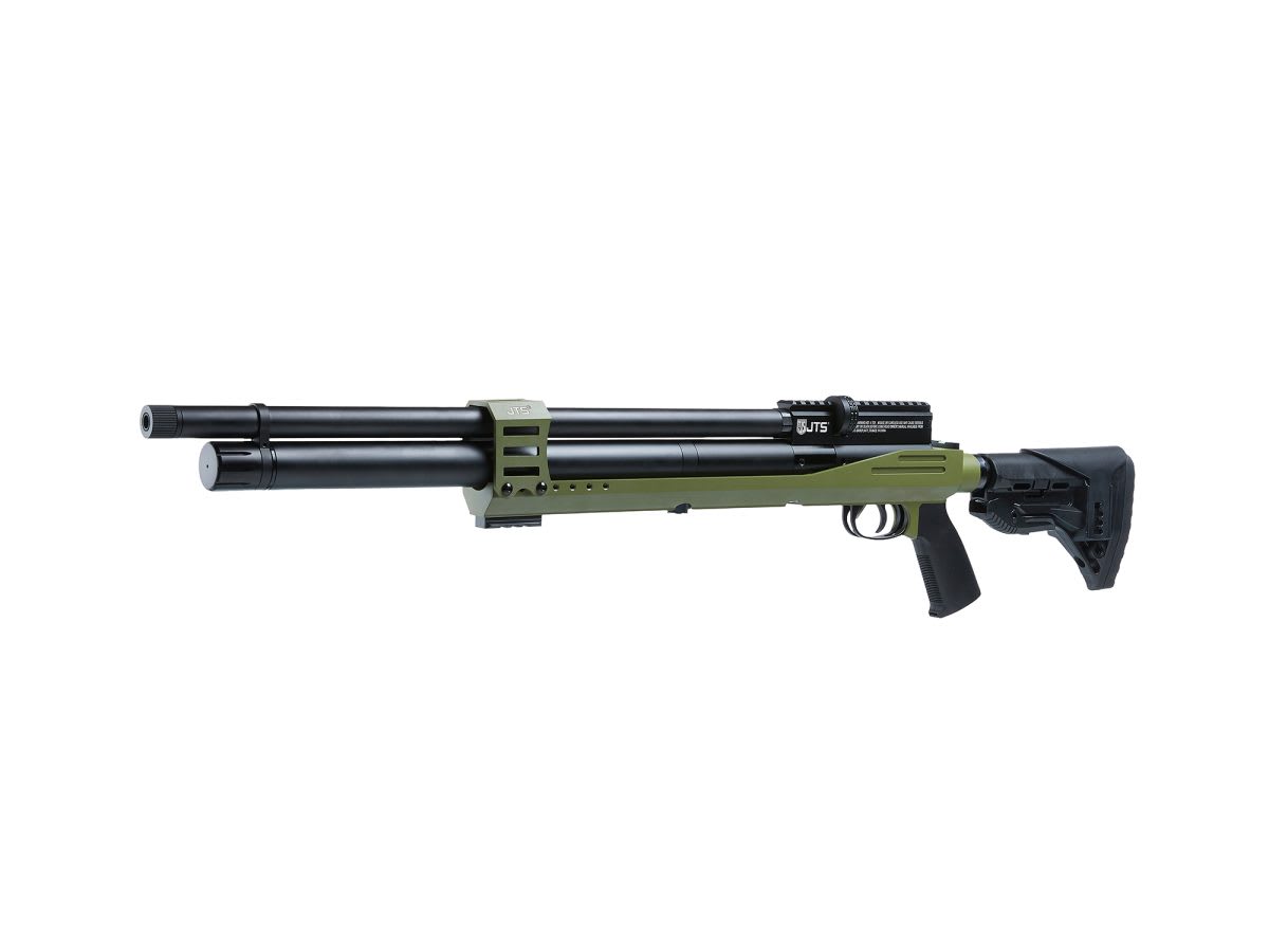 Experience precision and power with the JTS Airacuda PRS Max Green Aluminum Chassis JAC074. Designed for enthusiasts who demand accuracy and reliability, this air rifle features a robust green aluminum chassis that delivers both durability and a modern look. The adjustable stock and ergonomic pistol grip ensure a comfortable fit for shooters of all sizes, while the integrated rail allows for easy mounting of optics and accessories.