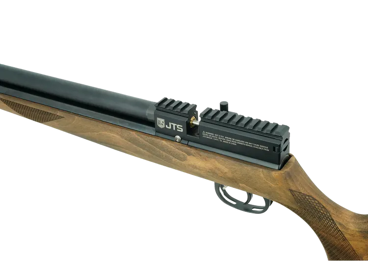 The JTS Airacuda PCP Air Rifle delivers an impressive balance of performance, craftsmanship, and value, making it an excellent choice for pest control, small-game hunting, and recreational shooting. Powered by a precharged pneumatic system, it produces velocities up to 860 FPS in both .22 and .25 calibers, offering the power and accuracy needed for a wide range of shooting applications. Its smooth sidelever action and 10-round metal magazine ensure reliable, fast follow-up shots, while the shrouded barrel helps keep noise levels moderate for a more enjoyable shooting experience.