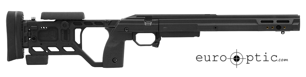 Designed for 5- or 10-round AICS magazines (Rem 700 LA uses CIP-length AICS magazines, Badger M2008 version uses AI AW 10-round double stack magazines)Tikka chassis have V-Bedding; Rem 700 chassis have Radius system. Both are CNC’d into aluminum backbone.Hardened stainless steel recoil lugRem 700 chassis can accommodate larger aftermarket recoil lugsWill accept any barrel contour up to 1.25” straight cylinder (no larger than .9” at the muzzle recommended)Trigger Guard/Mag catch