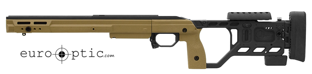 Designed for 5- or 10-round AICS magazines (Rem 700 LA uses CIP-length AICS magazines, Badger M2008 version uses AI AW 10-round double stack magazines)Tikka chassis have V-Bedding; Rem 700 chassis have Radius system. Both are CNC’d into aluminum backbone.Hardened stainless steel recoil lugRem 700 chassis can accommodate larger aftermarket recoil lugsWill accept any barrel contour up to 1.25” straight cylinder (no larger than .9” at the muzzle recommended)Trigger Guard/Mag catch