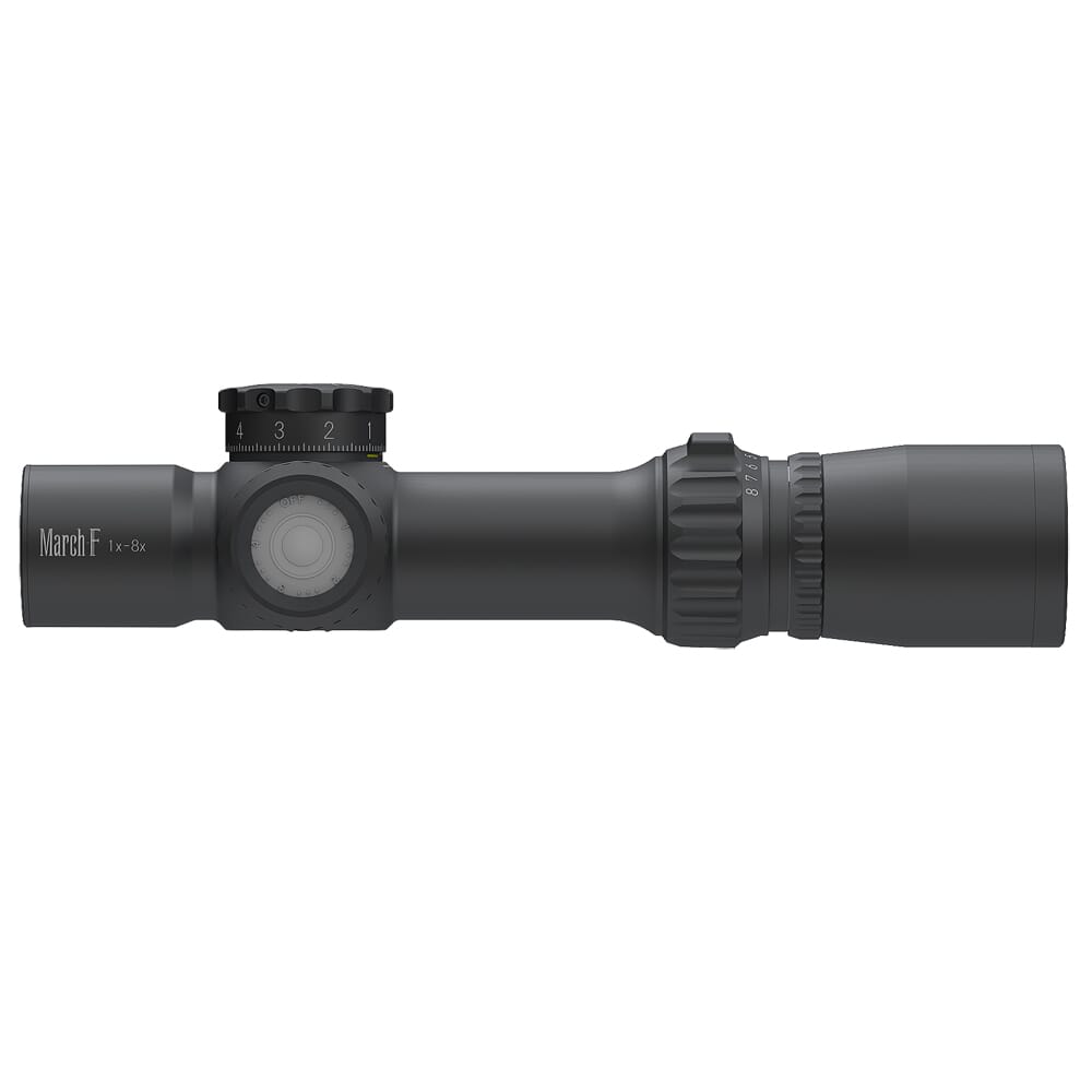 The March-F Tactical 1-8x24 "Shorty" Riflescope is a compact and lightweight first focal plane riflescope. Weighing in at 17.1 oz. and only 8.4" long, the March-F Shorty is in a league all its own. The riflescope is ideal for short to mid-range shooting with reticle illumination, .1 Mil adjustments, and 100 yard fixed focused. The March-F Tactical 1-8x24 "Shorty" Riflescope will take a 3-Gun competition or PDW pistol/rifle to the next level.