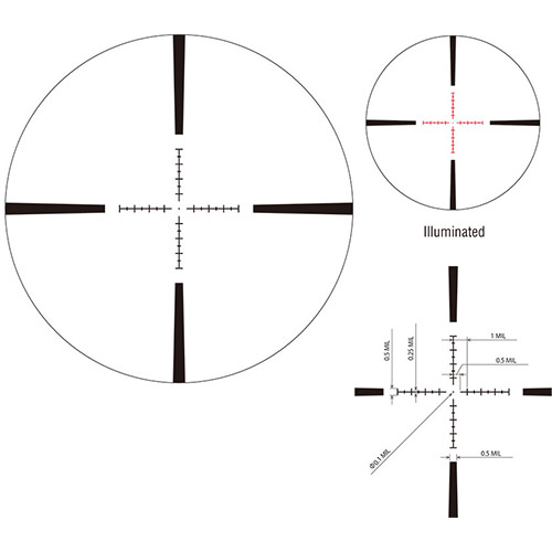 The March-F 3-24x52 Tactical Riflescope is the go to scope for both long range hunters and tactical shooters all over the world. The scope has a large 52mm objective lens made of extra low dispersion optical glass that allows for a bright and clear sight picture even as the sun sets. The scope features tactical exposed turrets for windage and elevation, parallax correction from 10 yards to infinity, and an illuminated tactical reticle in the first focal plane.