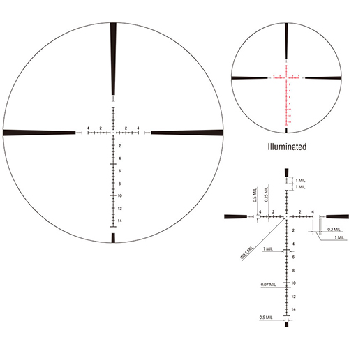 The March-F 3-24x52 Tactical Riflescope is the go to scope for both long range hunters and tactical shooters all over the world. The scope has a large 52mm objective lens made of extra low dispersion optical glass that allows for a bright and clear sight picture even as the sun sets. The scope features tactical exposed turrets for windage and elevation, parallax correction from 10 yards to infinity, and an illuminated tactical reticle in the first focal plane.