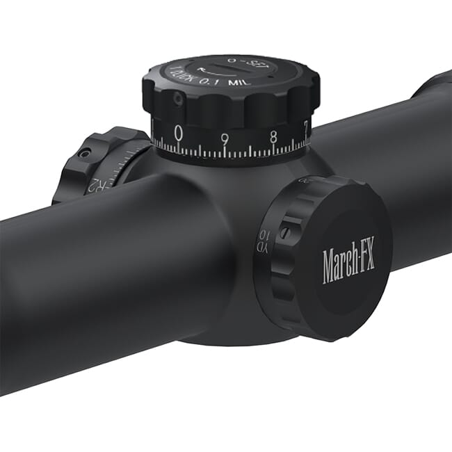 Has eight magnification ratios, including the highest magnification ratio in the first focal plane (FFP) configuration rifle scope made to date. The mrad reticle scale value remains constant across the entire zoom range. It is easy to range the target without thinking about where to set the zoom range. Additionally, with the capability to set any position as the zero point in elevation (0-set device), the shooter will never lose his starting calibration. This March FX Tactical 5-40x56mm Scope was designed to eliminate optical aberration without compromise, utilizing high-end extra-low dispersion (ED) lenses.