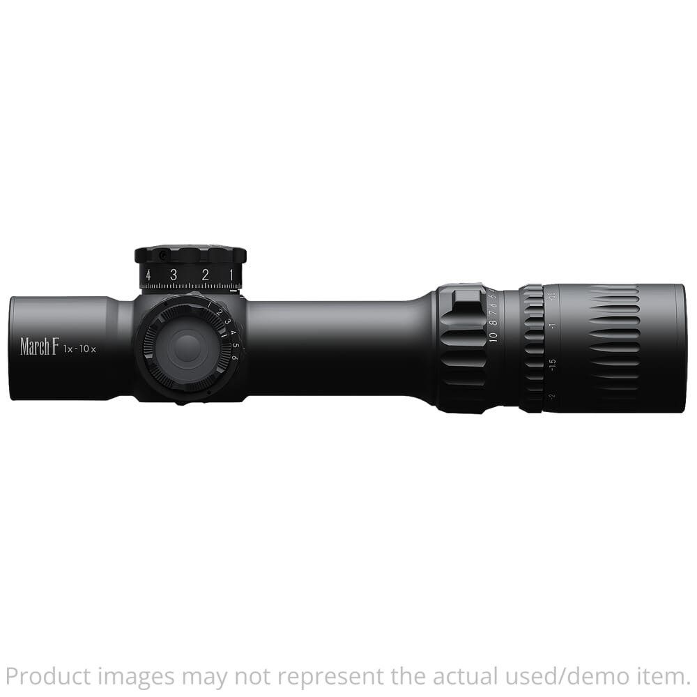 March’s technical expertise and precision manufacturing practices has led them to create the F Tactical Shorty Riflescope – an advanced optic with a 10x magnification range and a dual reticle. The dual reticle provides to best aspects of a first focal plane and second focal plane reticle. It offers the convenience of a first focal plane reticle which shrinks and grows as the user zooms in and out, but still provides the usability of a second focal plane reticle with a constant line thickness as the magnification changes. This dual reticle, combined with an ultra-bright illuminated center dot allows the user to use the F Tactical Shorty as a standard riflescope at higher magnification as well as a red dot sight at close range on 1x magnification. The reticle itself is the advanced DR-TR1, featuring a precise illuminated center dot with a “Christmas tree” pyramid of dots and hash marks to serve as holdover points to compensate for bullet drop and wind drift.