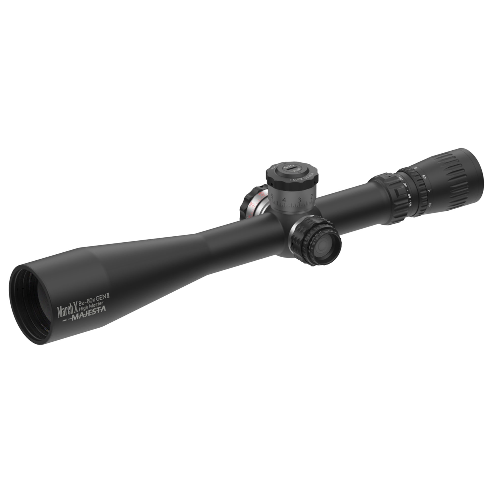 The March-X Tactical "High Master" Majesta II 8-80x56mm SFP Riflescope is a no-compromise precision optic engineered for shooters who demand extreme magnification, elite optical performance, and absolute mechanical confidence. As the Gen II evolution of the renowned Majesta platform, it delivers an industry-leading 80x maximum magnification with a comprehensive optical redesign that improves close-range focus, edge-to-edge resolution, thermal stability, and mirage resistance. A true 25° wide-angle eyepiece dramatically expands the field of view at all magnifications, reducing tunneling and enhancing target awareness in both competitive and tactical environments.