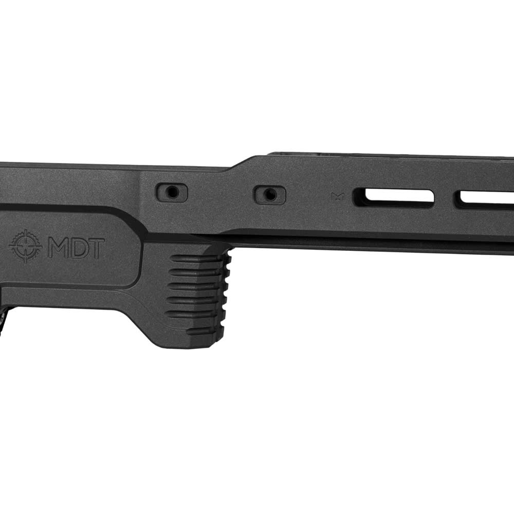 The MDT ACC Elite Chassis Base System for the Tikka T3x Short Action in Black is a premium precision-rifle platform engineered for shooters seeking top-tier stability, accuracy, and customization. Machined from hard-anodized aircraft-grade aluminum, this Chassis Base features a full-length integrated ARCA rail and M-LOK forend that provides a rigid and rock-solid foundation for mounting bipods, tripods, accessories, and optional weights while minimizing flex for enhanced consistency. Its extended forend and thoughtfully positioned attachment points allow for fine-tuned balance and seamless integration of modular add-ons such as MDT’s Night Vision Hood or Control Bridge. Ergonomic refinements including an adjustable M-LOK thumb rest and custom-cut grip tape improve barricade contact and overall control, while precision-engineered components like the magwell and latch ensure smooth, reliable operation with premium actions. Designed to support repeatable accuracy and dynamic handling in competition, tactical, or long-range environments, the ACC Elite Chassis Base blends rugged construction with advanced modularity to elevate your Tikka T3x SA rifle into a high-performance precision platform.