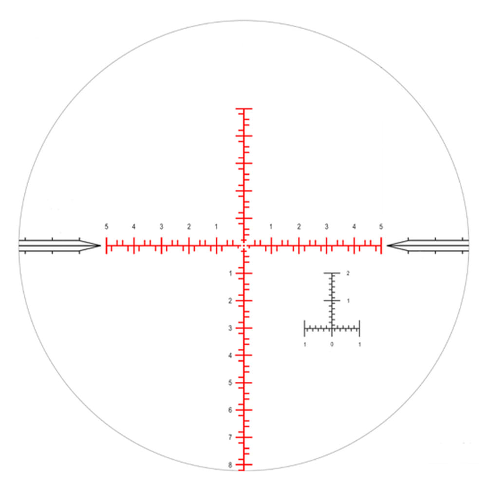 The MIL-C has a simple center dot for a fineaiming point, while the main lines feature.2 Mil-Radian holds. Each whole Mil-Radianis numbered for fast reference under evenstressful conditions. The MIL-C features theinverted TMil-Radian ranging scale madefamous in our MIL-R reticle. This allows foreasy and logical estimations as low as .05 MilRadians if needed.